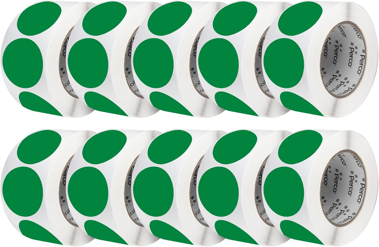 Perco Green 3-Inch Perforated Circle Dot Sticker Labels — 10 Rolls, 5,000 Round Stickers — with Permanent Adhesive for Moving Boxes, Sale Signage, Displays, Status Messaging—Made in USA