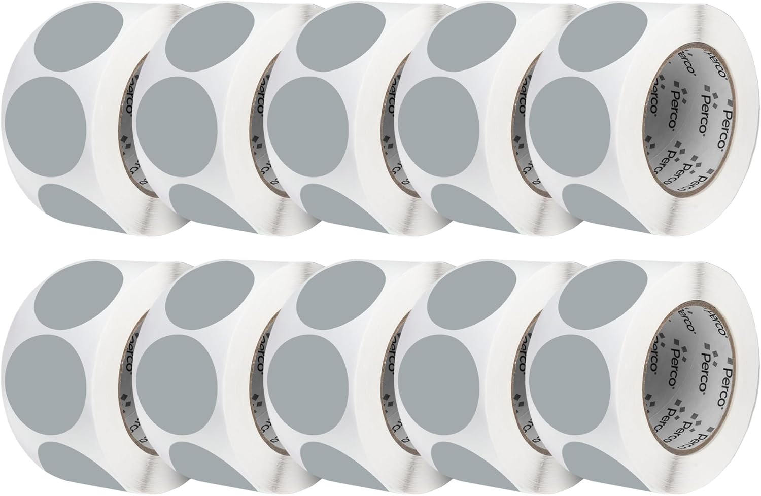 Perco Grey 3-Inch Perforated Circle Dot Sticker Labels — 10 Rolls, 5,000 Round Stickers — with Permanent Adhesive for Moving Boxes, Sale Signage, Displays, Status Messaging—Made in USA