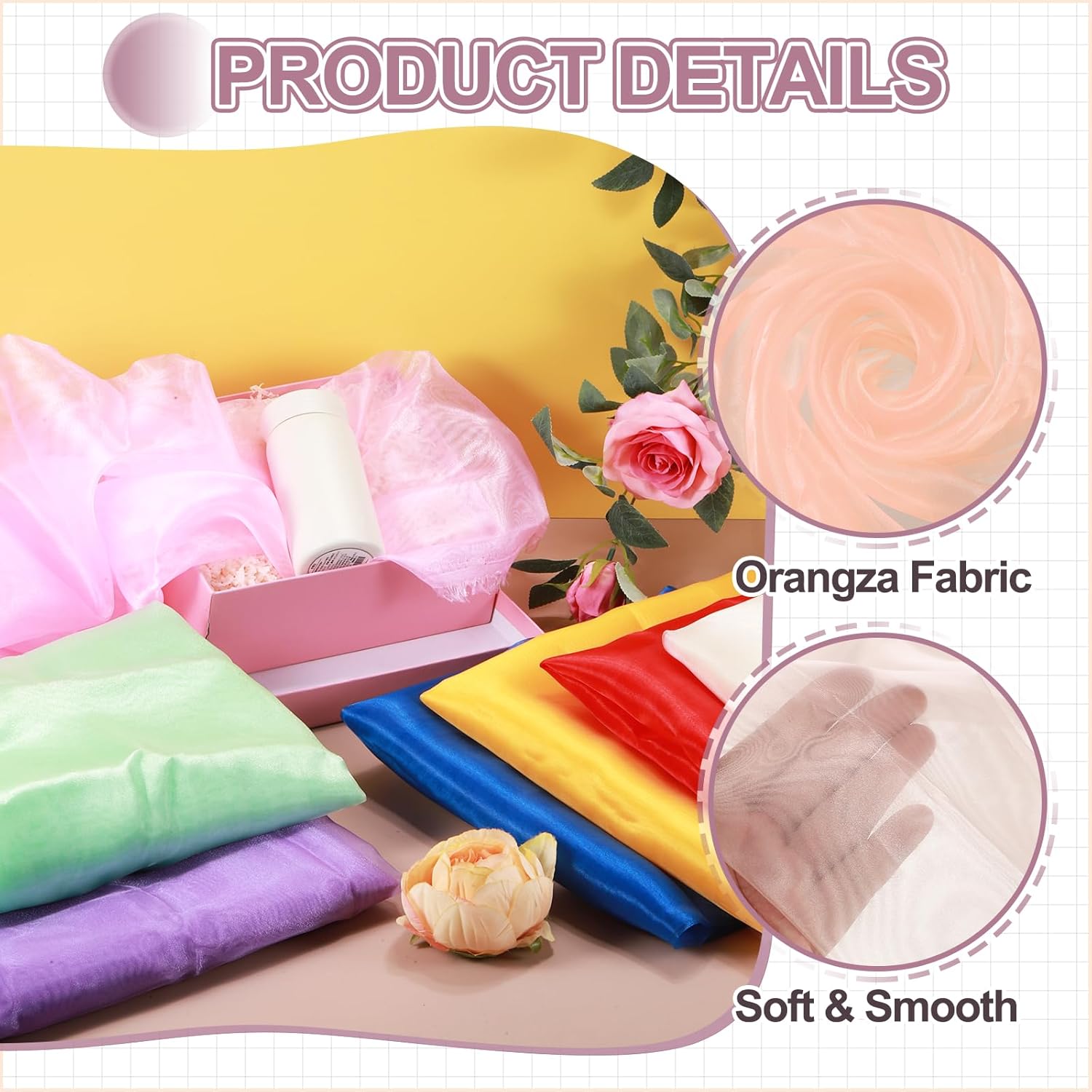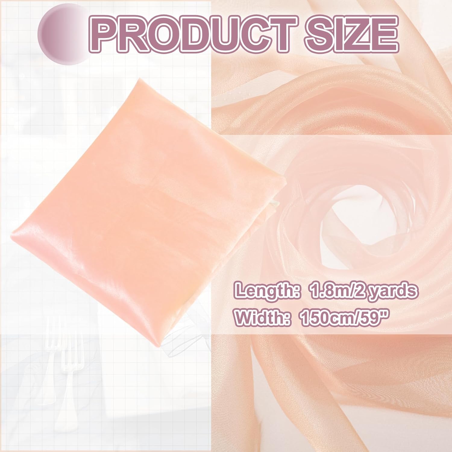 - The organza fabric is in the size of 2 yards x 59 inches/ 1.8m x 150cm (LxW), providing ample fabric for large-scale designs, making it good for wedding dresses, curtains, or event installations.