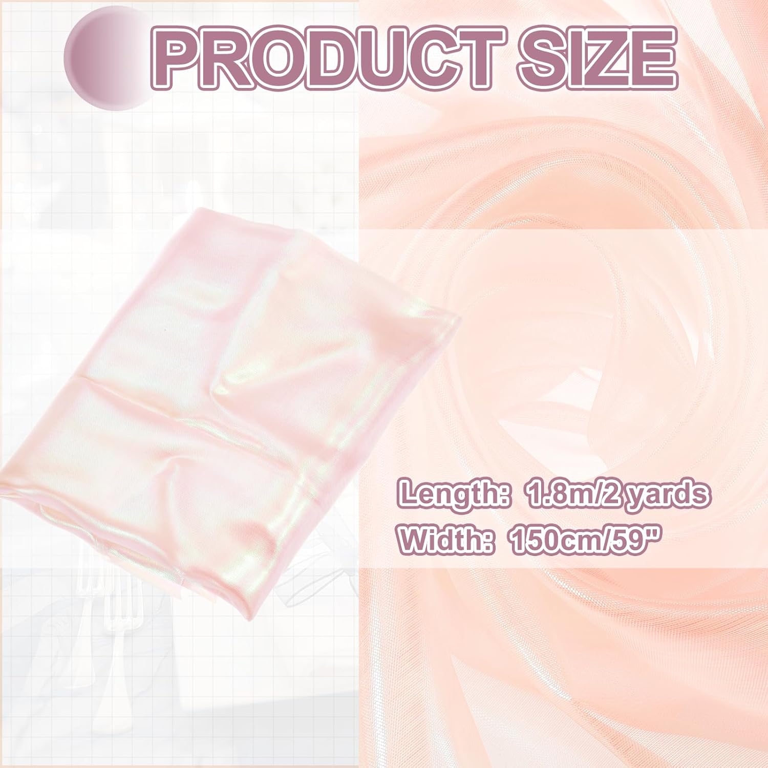 - The organza fabric is in the size of 2 yards x 59 inches/ 1.8m x 150cm (LxW), providing ample fabric for large-scale designs, making it good for wedding dresses, curtains, or event installations.