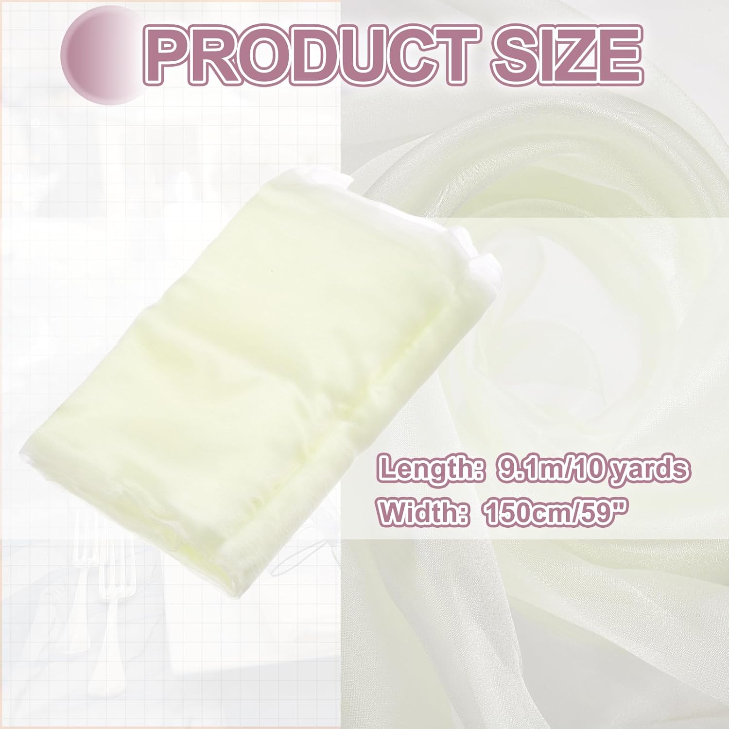 - The organza fabric is in the size of 10 yards x 59 inches/ 9.1m x 150cm (LxW), providing ample fabric for large-scale designs, making it good for wedding dresses, curtains, or event installations.