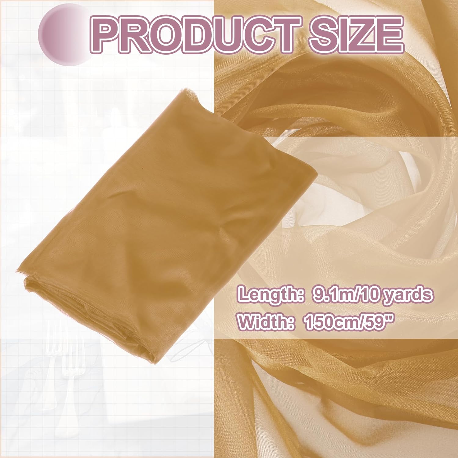 MECCANIXITY Iridescent Sheer Organza Fabric, 10 Yards x 59 Inches Solid Holographic Shiny Fabric Organza Cloth for Wedding, Curtains, Costume, Photo Background, Light Brown