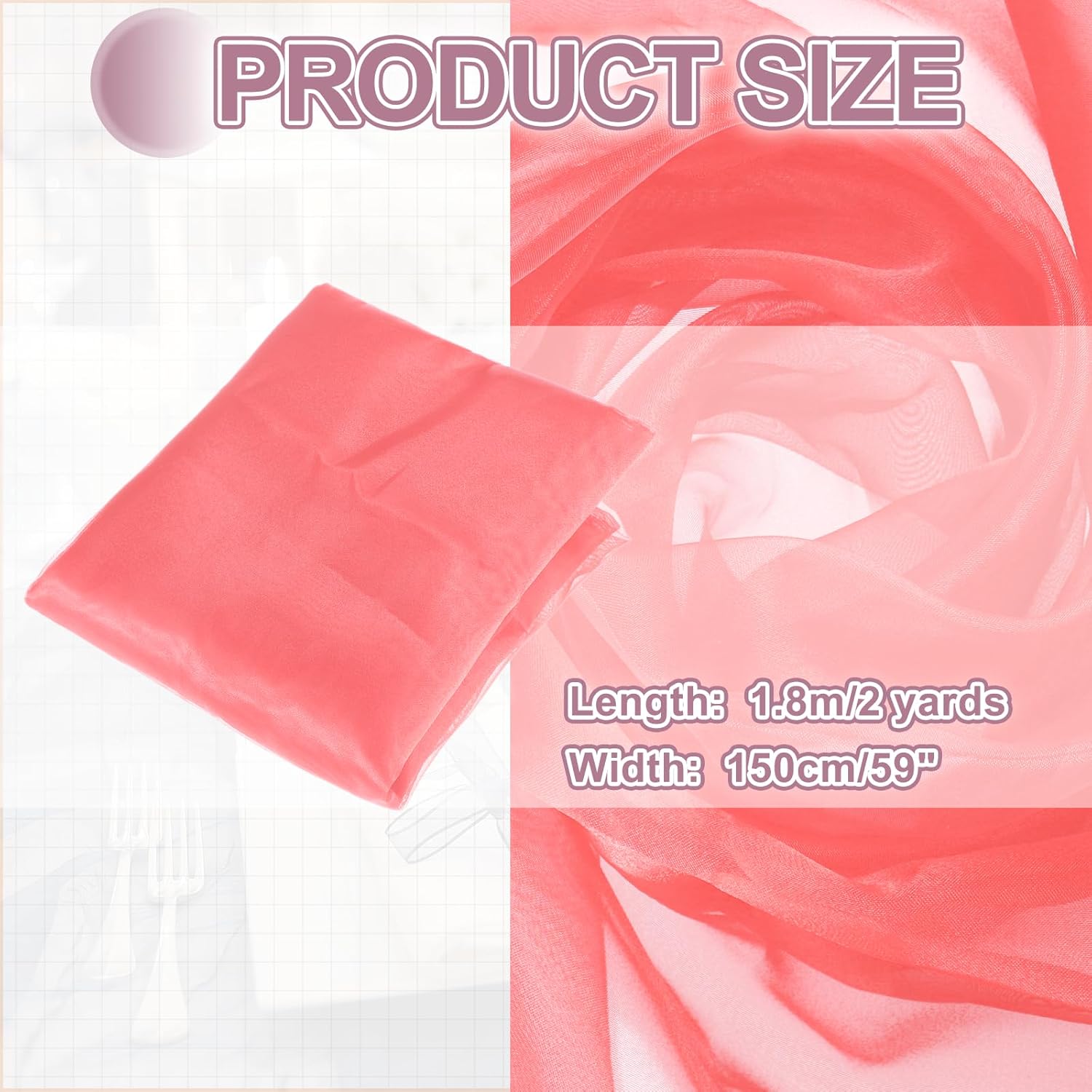 - The organza fabric is in the size of 2 yards x 59 inches/ 1.8m x 150cm (LxW), providing ample fabric for large-scale designs, making it good for wedding dresses, curtains, or event installations.