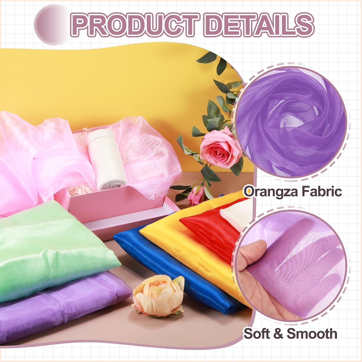- The organza fabric is in the size of 10 yards x 59 inches/ 9.1m x 150cm (LxW), providing ample fabric for large-scale designs, making it good for wedding dresses, curtains, or event installations.