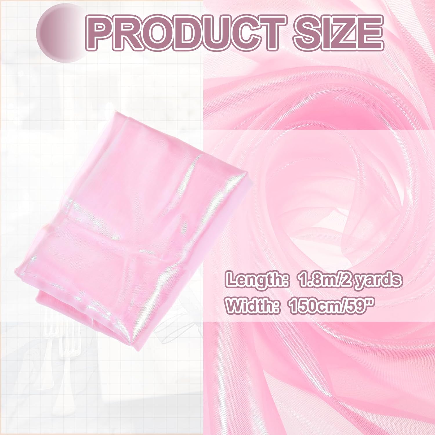- The organza fabric is in the size of 2 yards x 59 inches/ 1.8m x 150cm (LxW), providing ample fabric for large-scale designs, making it good for wedding dresses, curtains, or event installations.