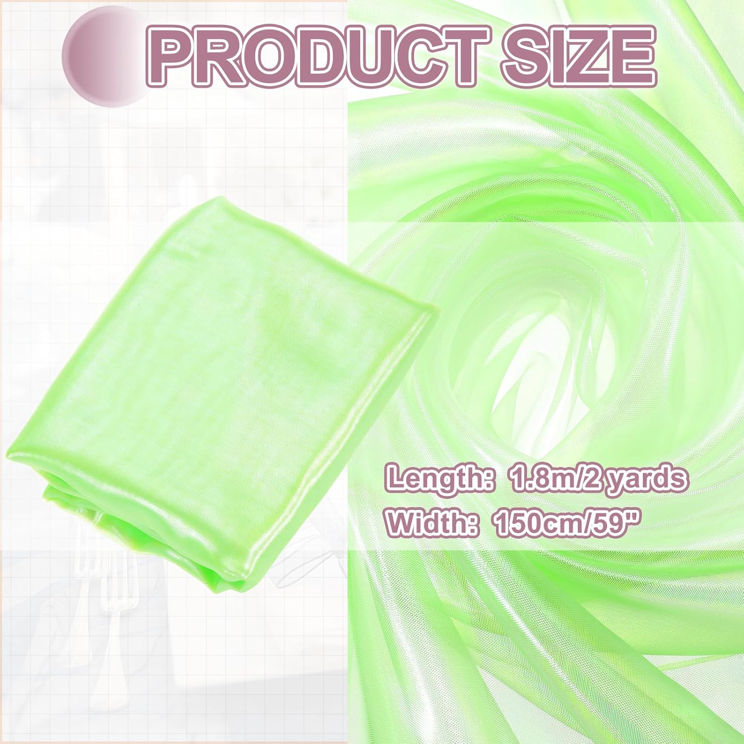 - The organza fabric is in the size of 2 yards x 59 inches/ 1.8m x 150cm (LxW), providing ample fabric for large-scale designs, making it good for wedding dresses, curtains, or event installations.