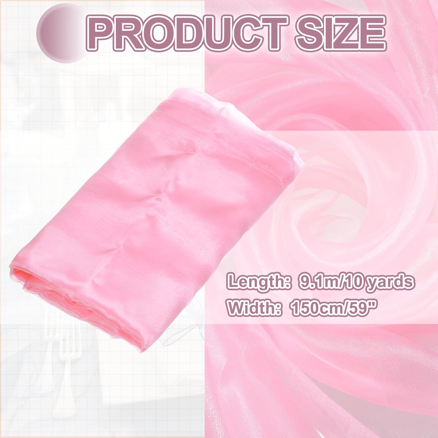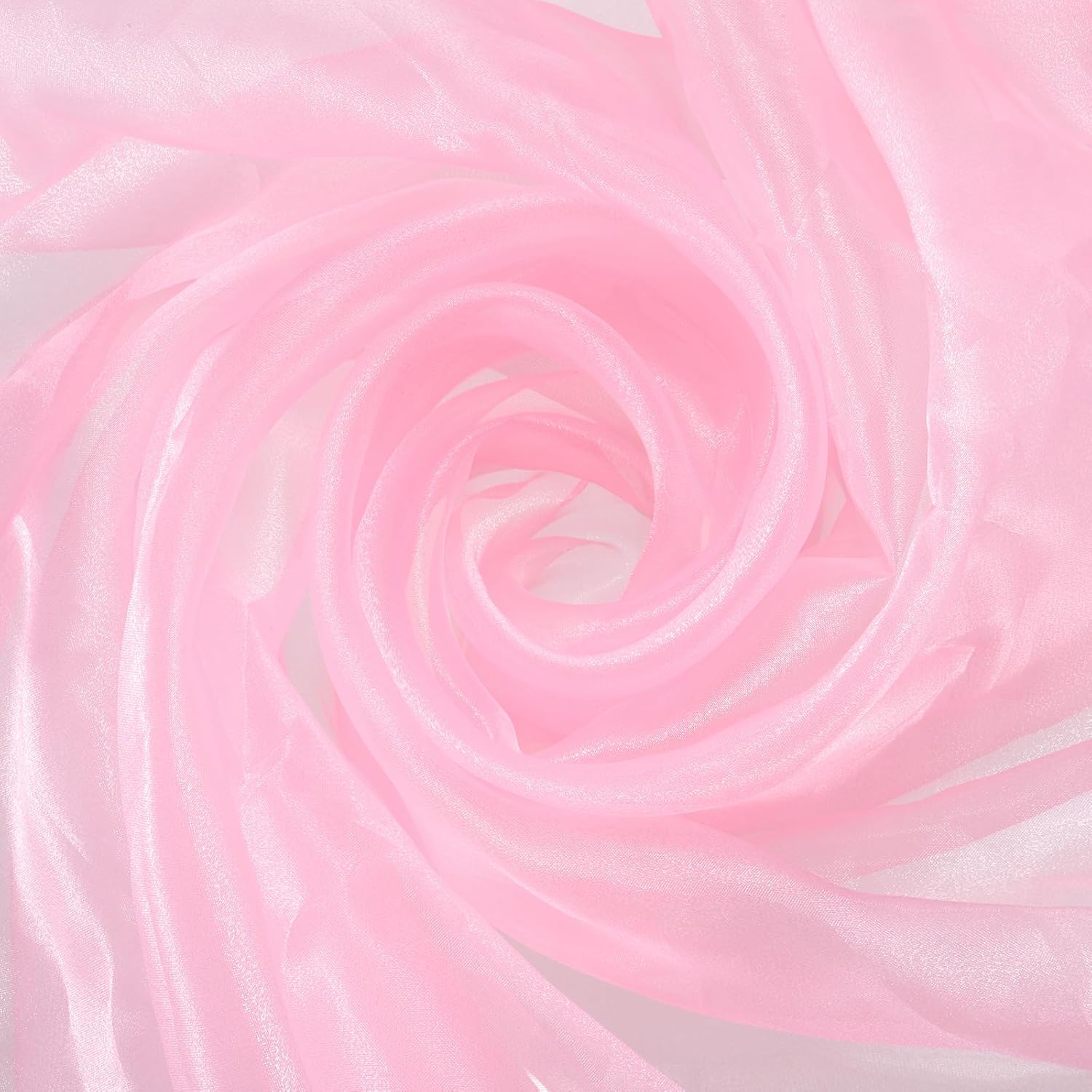 MECCANIXITY Iridescent Sheer Organza Fabric, 10 Yards x 59 Inches Solid Holographic Shiny Fabric Organza Cloth for Wedding, Curtains, Costume, Photo Background, Pink