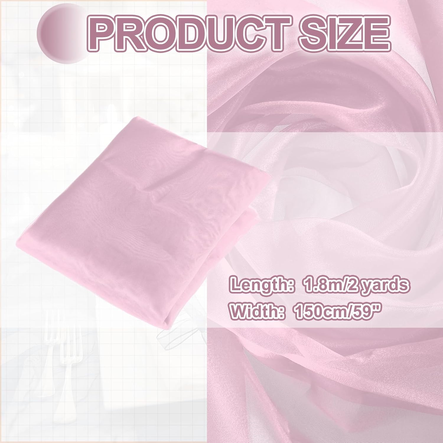 - The organza fabric is in the size of 2 yards x 59 inches/ 1.8m x 150cm (LxW), providing ample fabric for large-scale designs, making it good for wedding dresses, curtains, or event installations.
