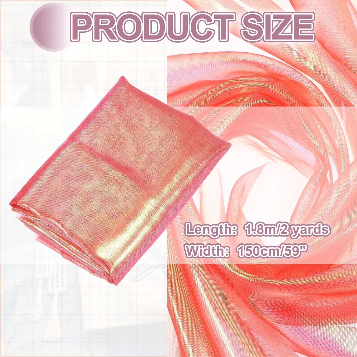 - The organza fabric is in the size of 2 yards x 59 inches/ 1.8m x 150cm (LxW), providing ample fabric for large-scale designs, making it good for wedding dresses, curtains, or event installations.