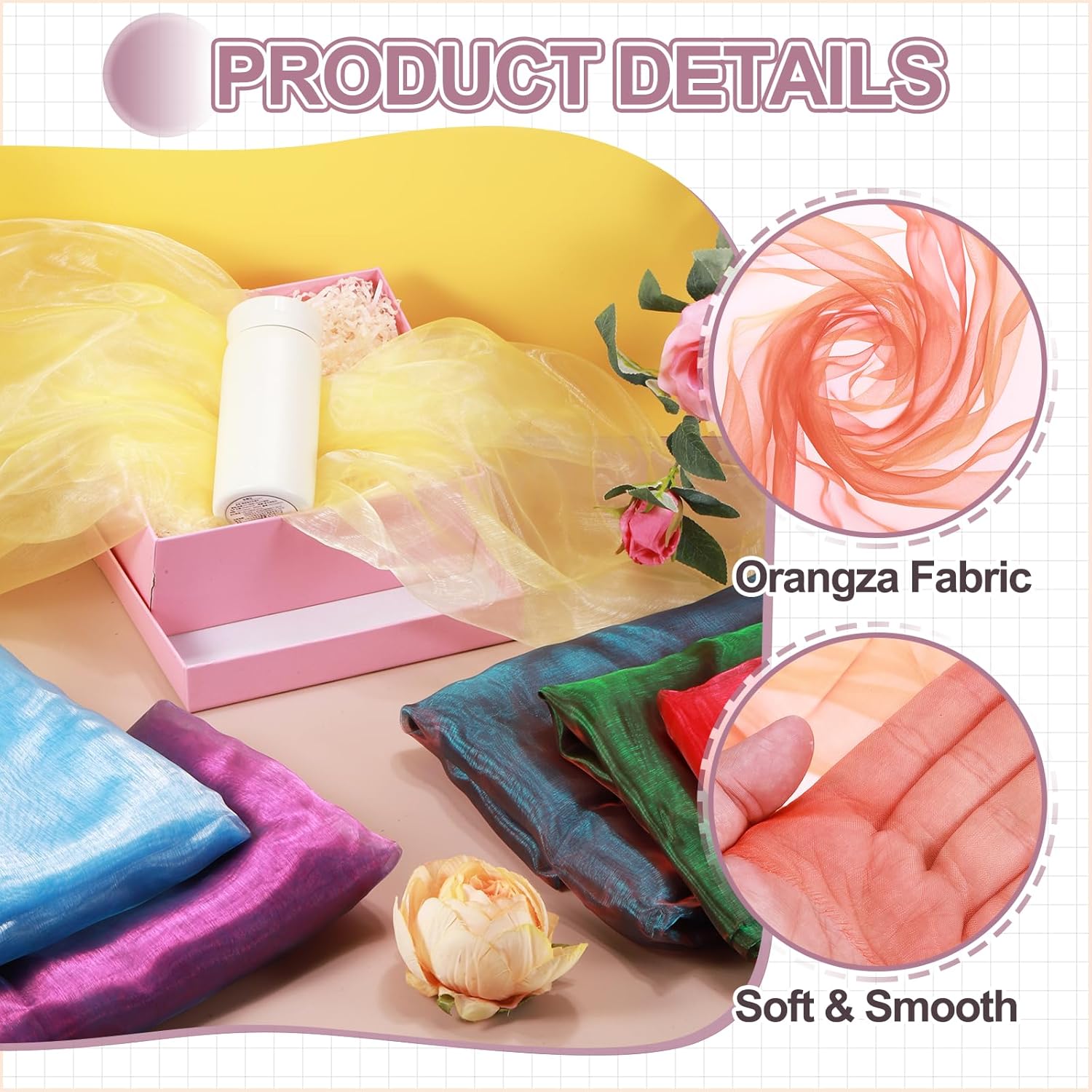 - Elevate your creative vision with this iridescent organza fabric, blending functionality and elegant beauty. Perfect for bridal wear, home decoration, curtains, table runners, event backdrops, floral arrangements, and DIY crafts.