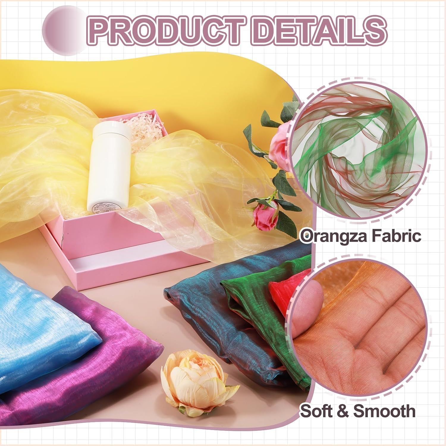 - Elevate your creative vision with this iridescent organza fabric, blending functionality and elegant beauty. Perfect for bridal wear, home decoration, curtains, table runners, event backdrops, floral arrangements, and DIY crafts.