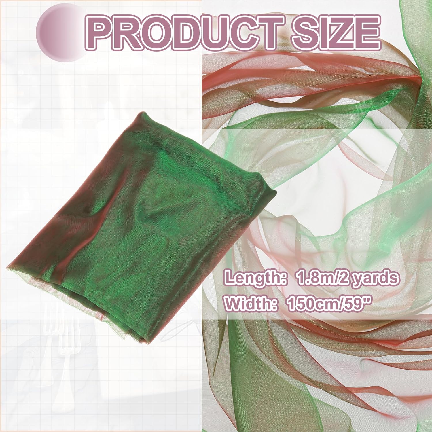 MECCANIXITY Iridescent Sheer Organza Fabric, 2 Yards x 59 Inches Solid Holographic Shiny Fabric Organza Cloth for Wedding, Curtains, Costume, Photo Background, Gradient Green Red