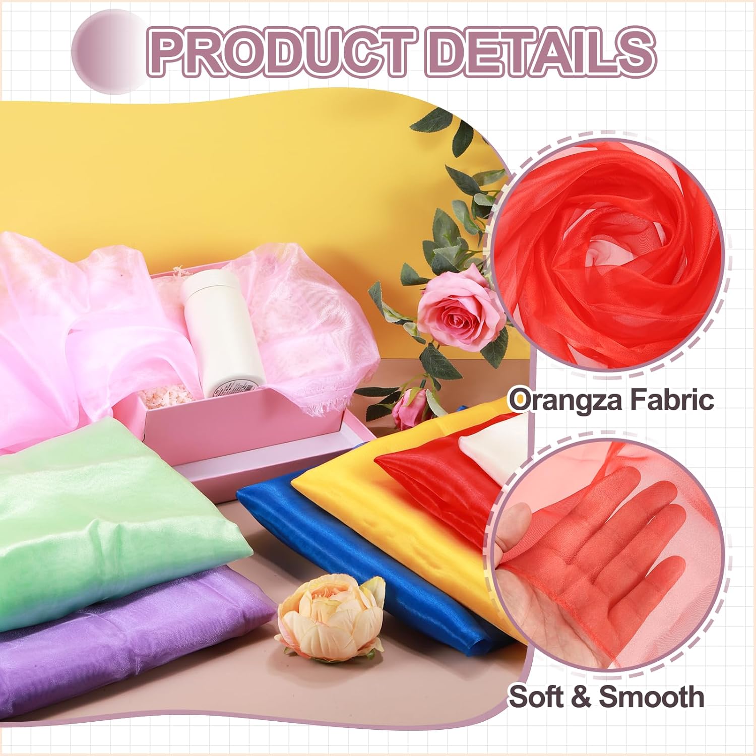 - The organza fabric is in the size of 2 yards x 59 inches/ 1.8m x 150cm (LxW), providing ample fabric for large-scale designs, making it good for wedding dresses, curtains, or event installations.