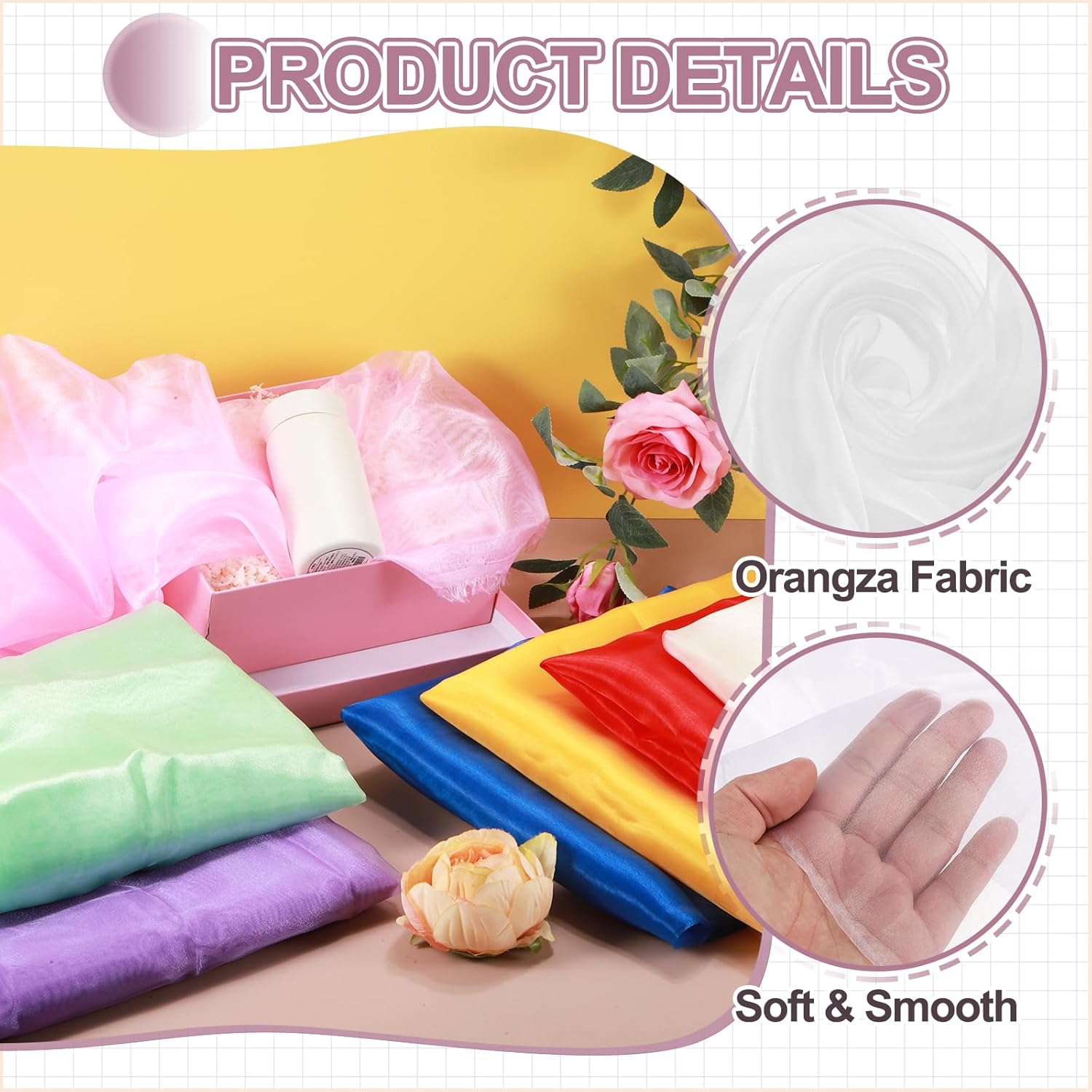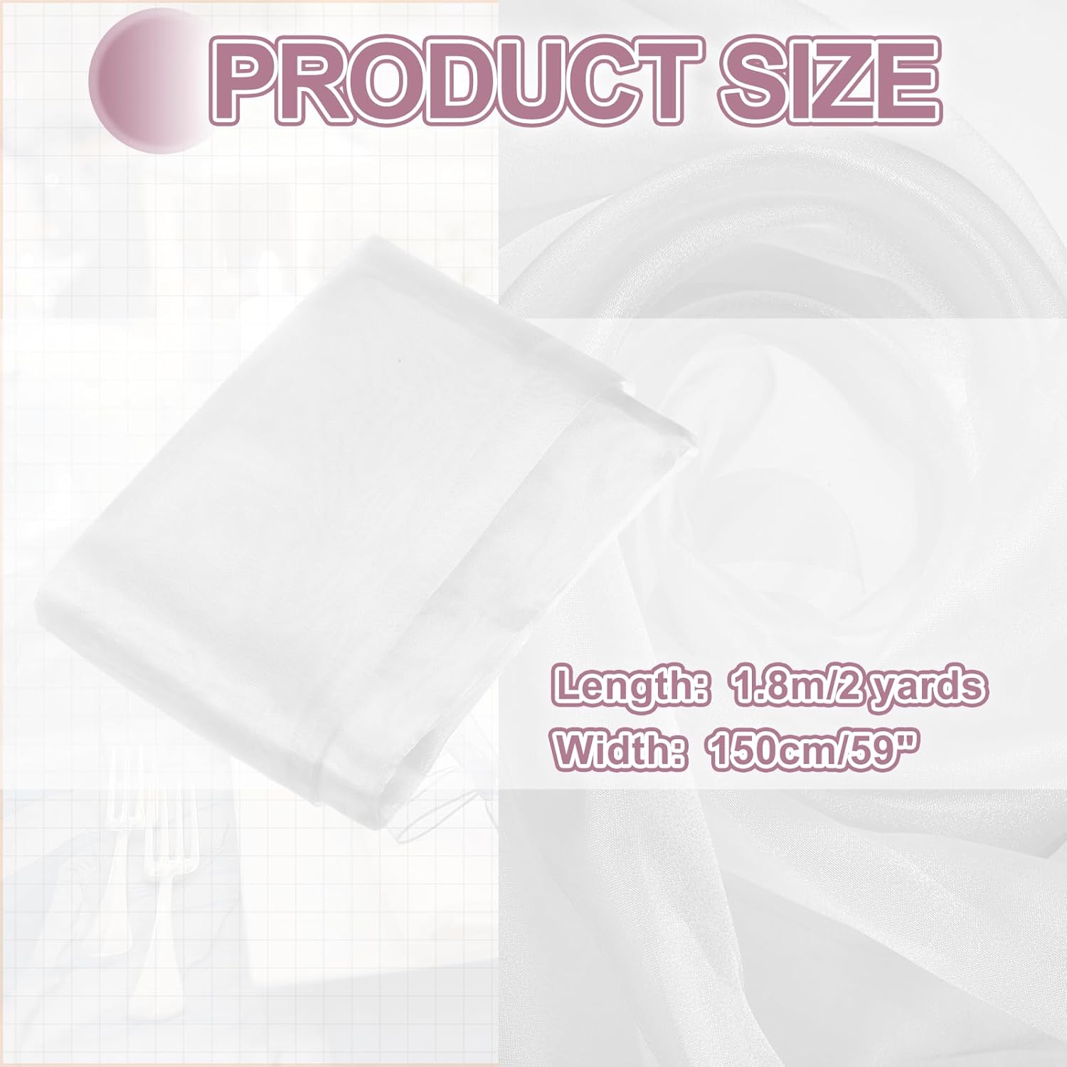 - The organza fabric is in the size of 2 yards x 59 inches/ 1.8m x 150cm (LxW), providing ample fabric for large-scale designs, making it good for wedding dresses, curtains, or event installations.