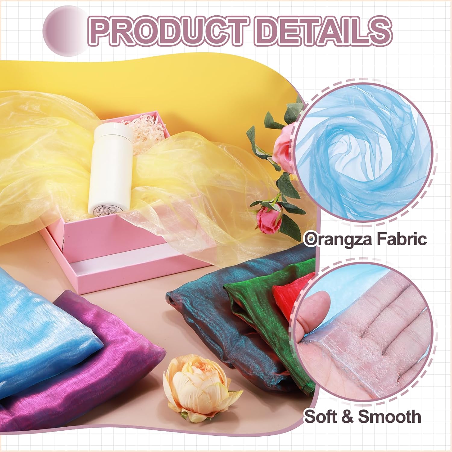 - Elevate your creative vision with this iridescent organza fabric, blending functionality and elegant beauty. Perfect for bridal wear, home decoration, curtains, table runners, event backdrops, floral arrangements, and DIY crafts.