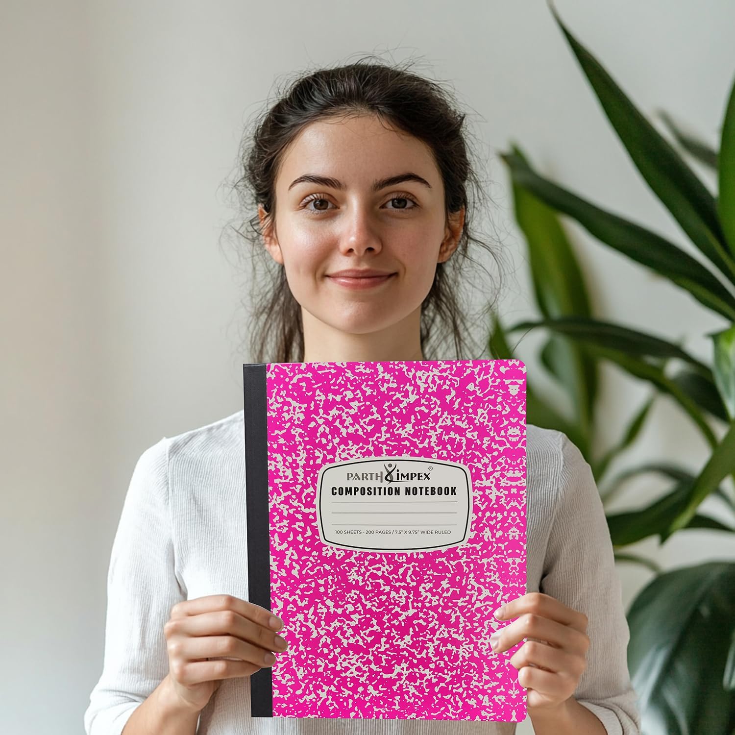 PARTH iMPEX 12 Pack Bulk Composition Notebooks Wide Ruled, 200 Pages (100 Sheets), 9-3/4 x 7-1/2, Hard Cover Wide Ruled Notebooks in 6 Assorted Colors, Composition Notebook For School College Office