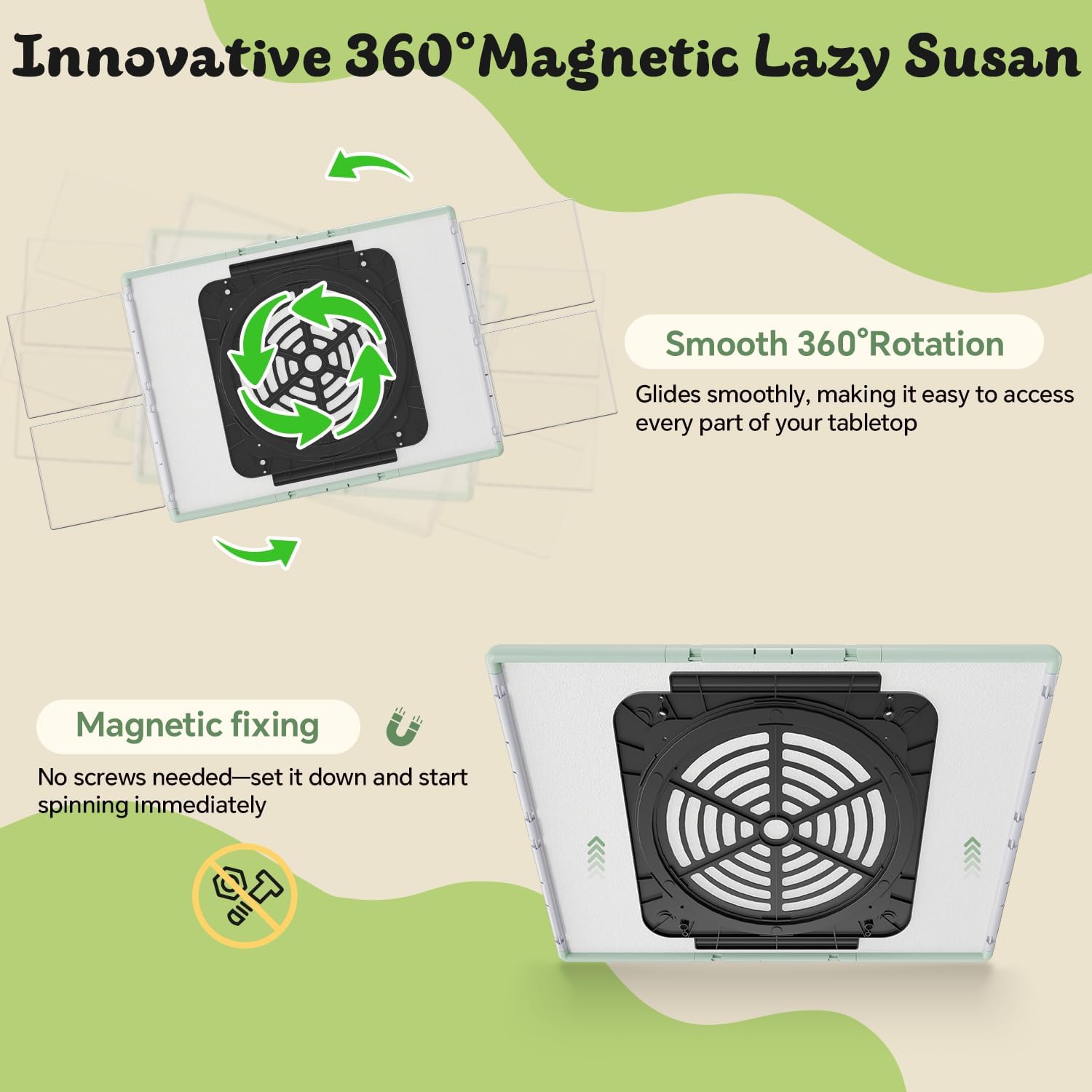 - 【360°Magnetic Lazy Susan & No Installation】Our portable puzzle board is equipped with a magnetic Lazy Susan, which allows for effortless installation and removal—no tools needed. Simply attach the strong magnetic Lazy Susan gently to the puzzle table, and you can achieve 360°smooth rotation. This lets you easily reach every section of the puzzle without having to stand up or reposition the table.