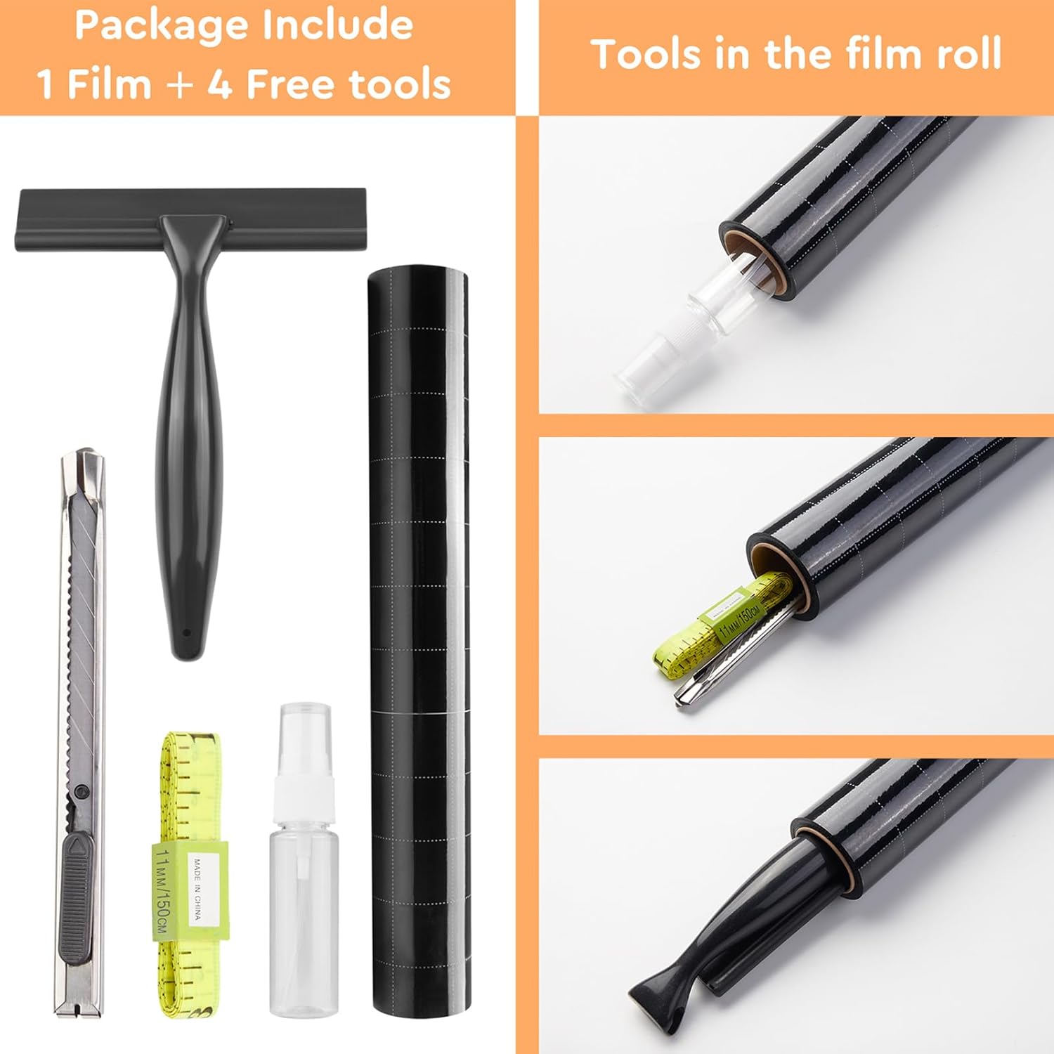 - EXTRA GIFT TOOL KITS: Each roll of blackout window clings comes with all the tools you need to install: spray bottle, utility knife, scraper and soft ruler to save money and time and make installation easier. The tools are in the paper tube, please tap tube to get tools out