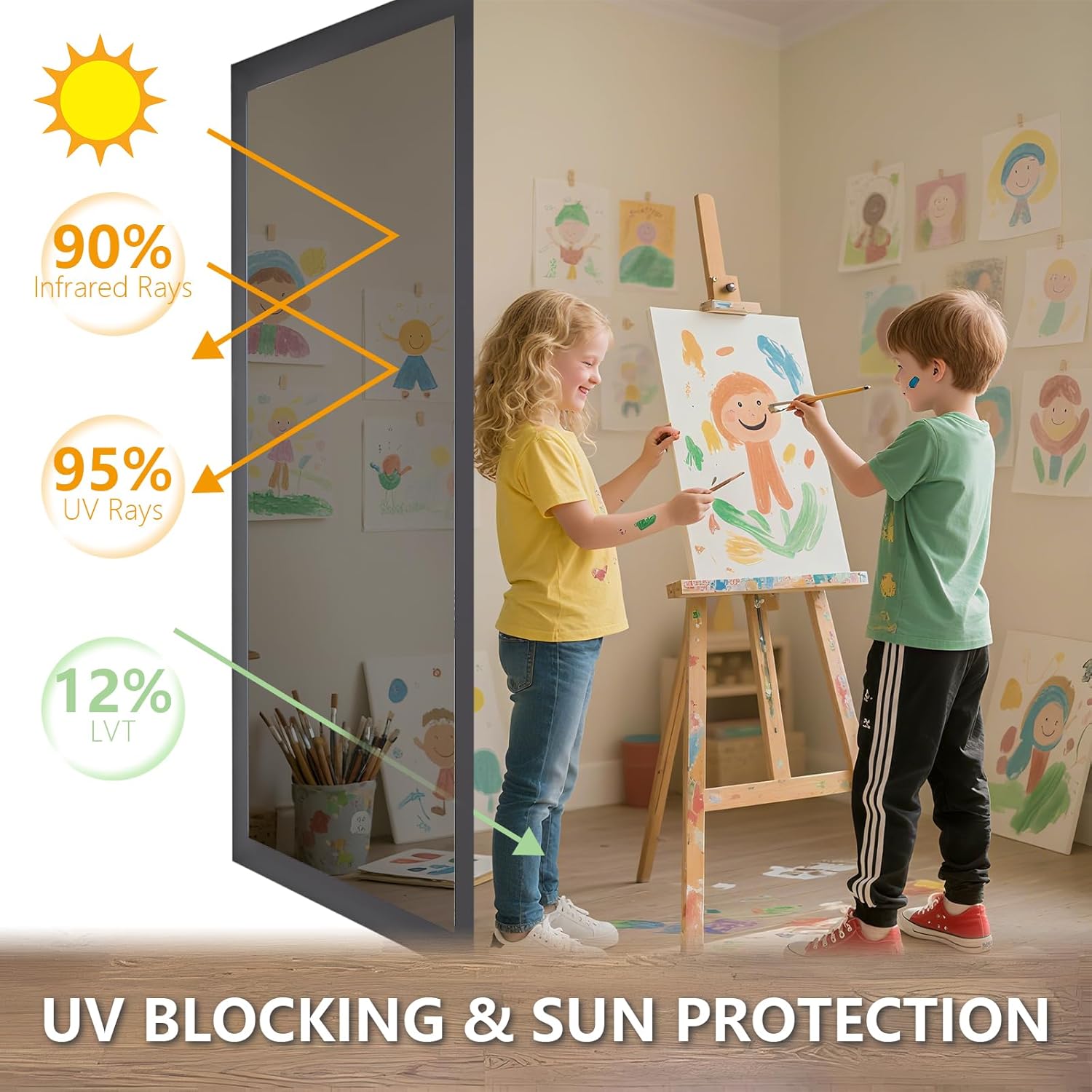- Heat and UV Protection: Our reflective daytime privacy window film has both UV protection (up to 99%) and cooling and sun protection functions, which can effectively block the sun's heat and harmful UV rays, protect indoor furniture and flooring, and improve spatial comfort