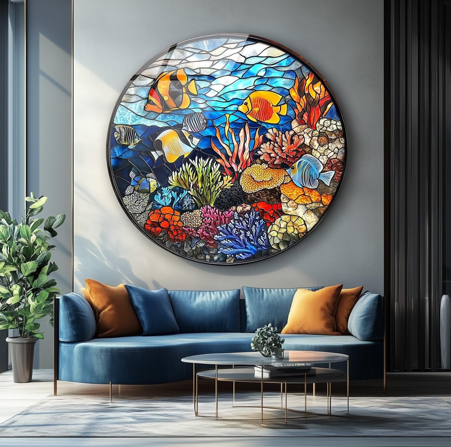 My Photostation.com 10''(25cm) Diameter Coral Reef Mosaic Round Glass Wall Art Tempered Glass Printing Wall Decor Large Wall Art Wall Hangings