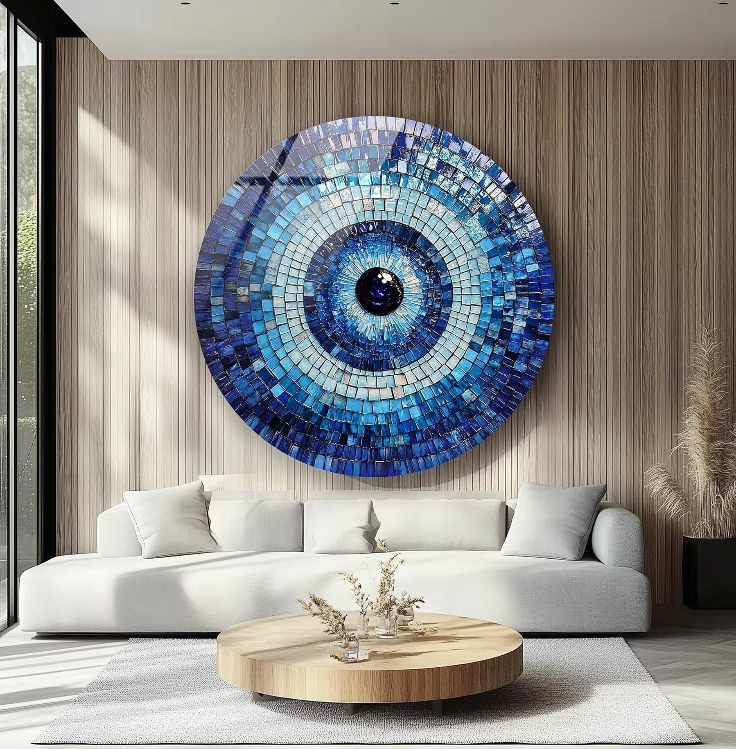 My Photostation.com 10''(25cm) Diameter Blue Mosaic Evil Eye Round Glass Wall Art Tempered Glass Printing Wall Decor Large Wall Art Wall Hangings