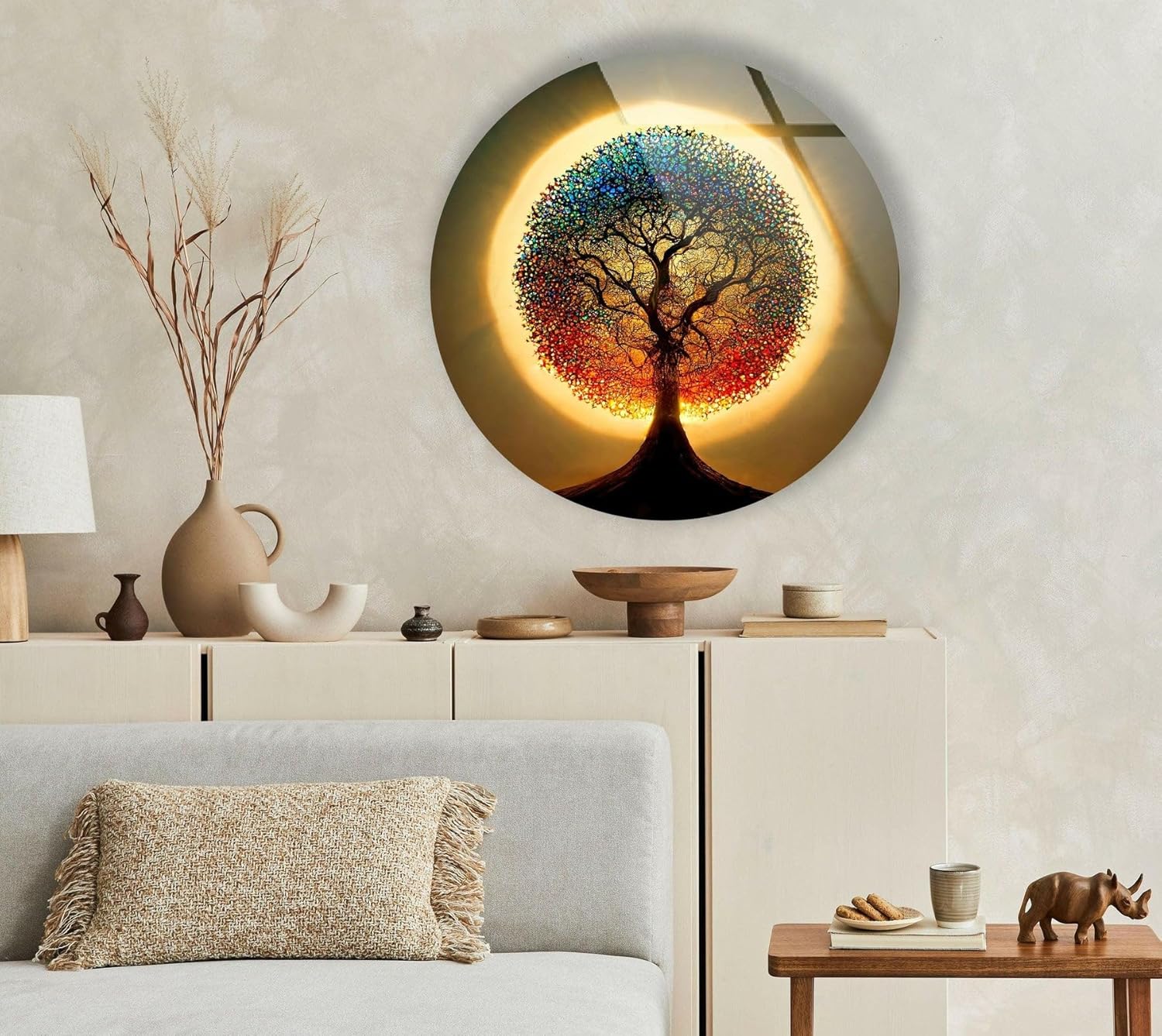 My Photostation.com 15.8''(40cm) Diameter Life of Tree Round Glass Wall Art Tempered Glass Printing Wall Decor Large Wall Art Wall Hangings