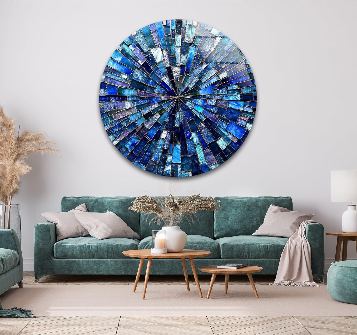 My Photostation.com 24''(60cm) Diameter Radiant Mosaic Burst Round Glass Wall Art Tempered Glass Printing Wall Decor Large Wall Art Wall Hangings