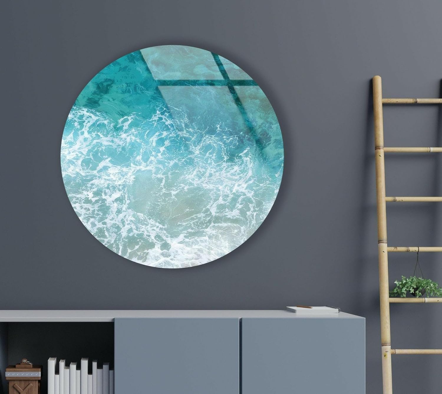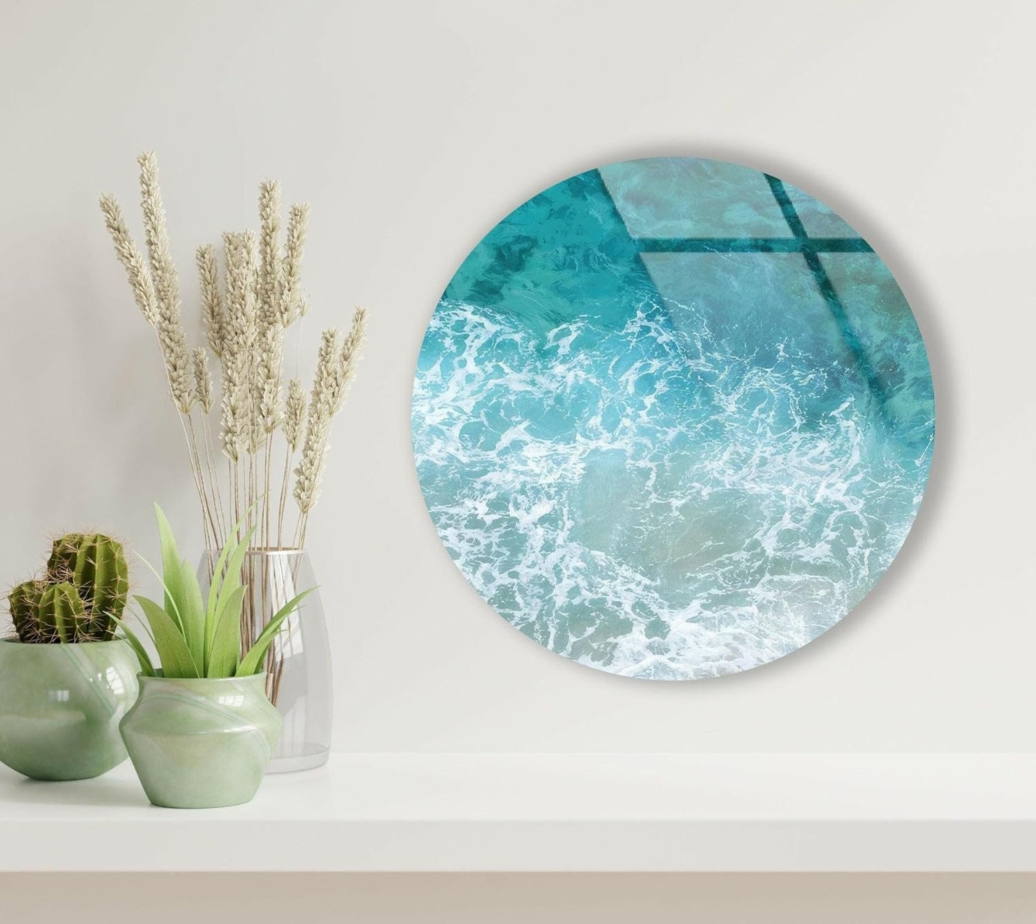 My Photostation.com 10''(25cm) Diameter Sea Waves Round Glass Wall Art Tempered Glass Printing Wall Decor Large Wall Art Wall Hangings