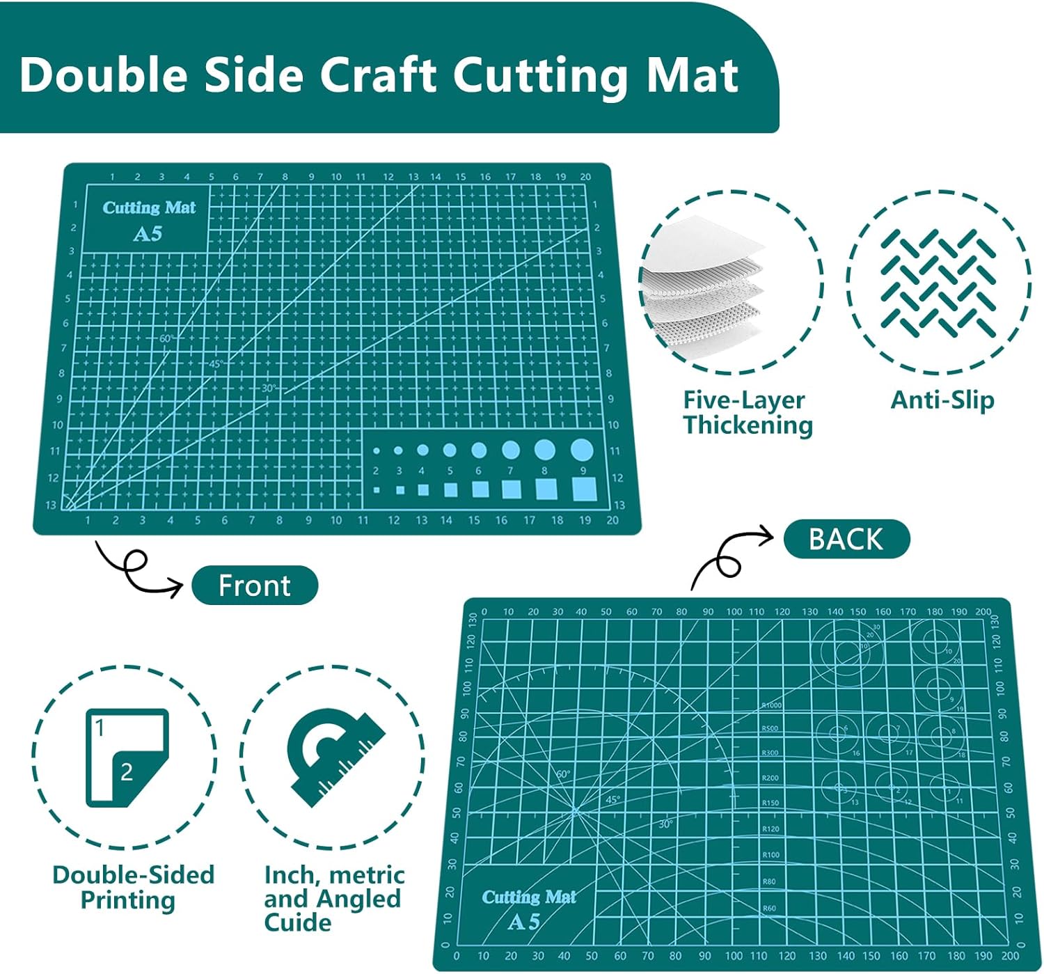 - High-Accuracy Craft Mat: Double-sided grids include 0.5 increments and 45°/60° angles, transforming it into a precision sewing cutting mat or fabric cutting mat for miniature quilting, paper crafts, and jewelry design.