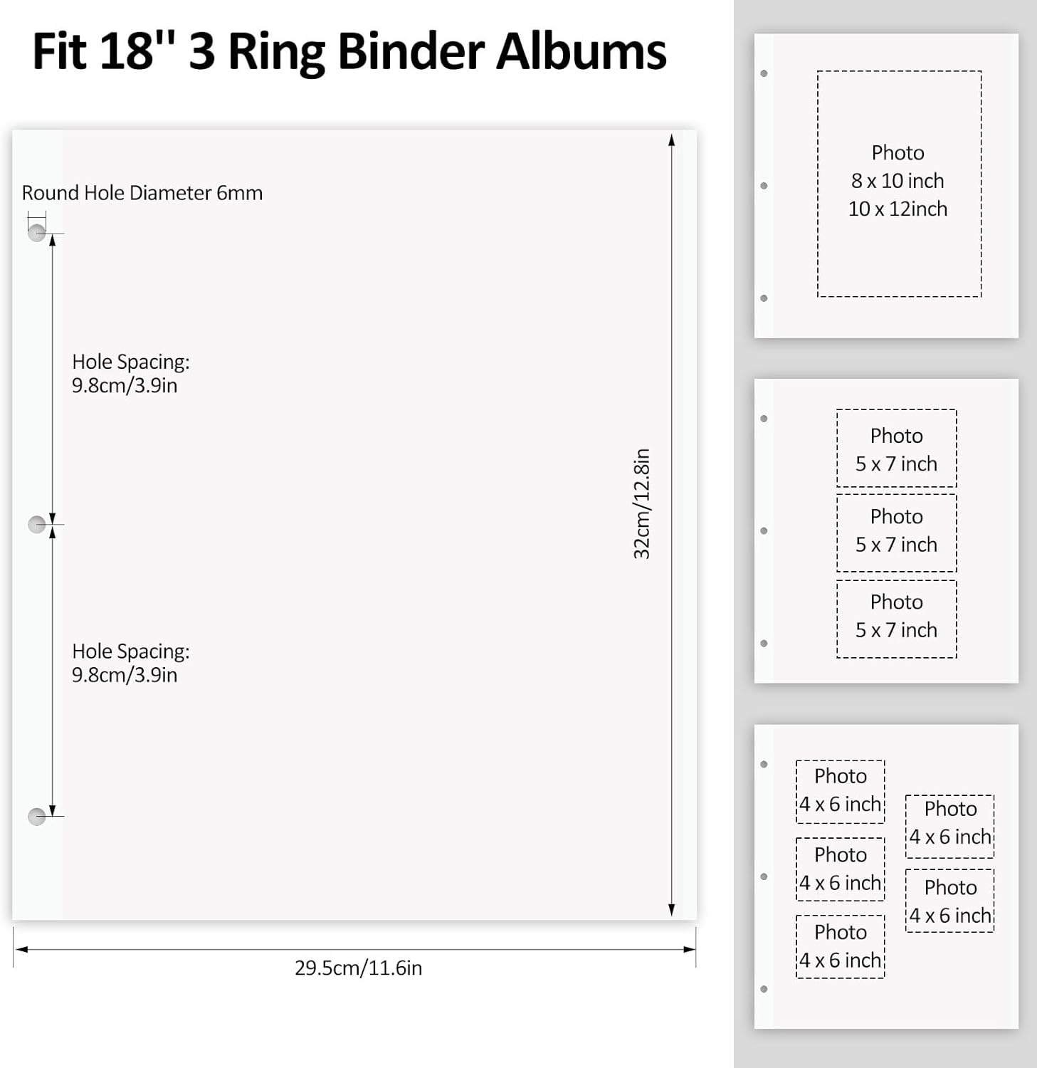 - Fit 3 Ring Scrapbook Album: 3-Ring Photo Album Refill Pages length 12.6'' x width 11.6'', 10 sheets/20 pages. It can hold 8x10 5x7 4x6 3x5 photos