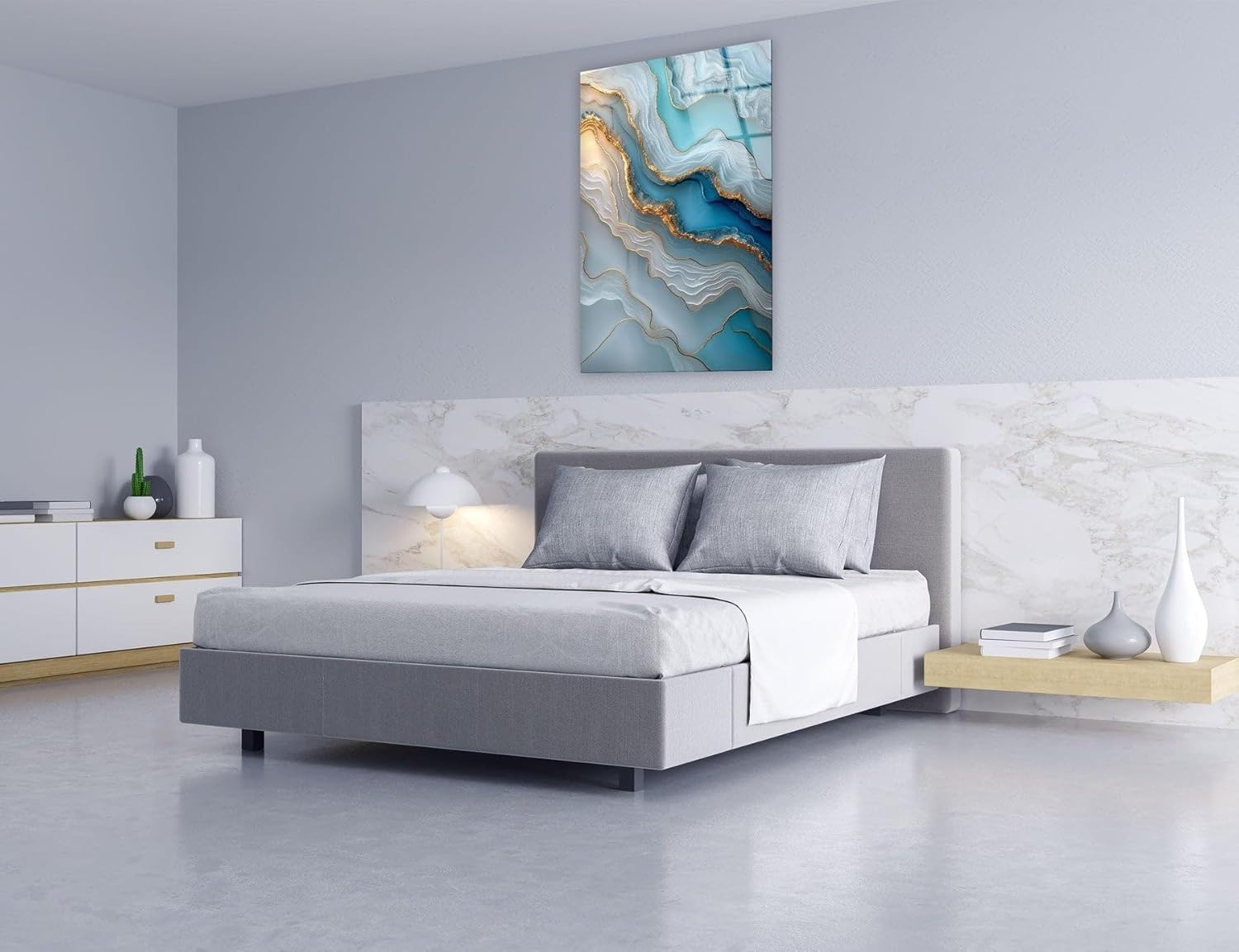 My Photostation.com Round 31,5'' Turquoise and Blue Alcohol ink Glass Wall Art Tempered Glass Printing Wall Decor Large Wall Art Wall Hangings