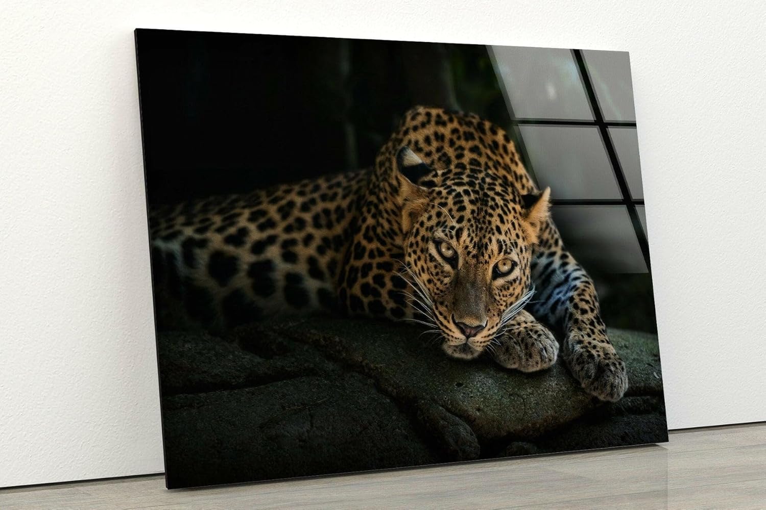 My Photostation.com 43Wx27H'' Fierce Leopard Glass Wall ArtTempered Glass Printing Wall Decor Large Wall Art Wall Hangings
