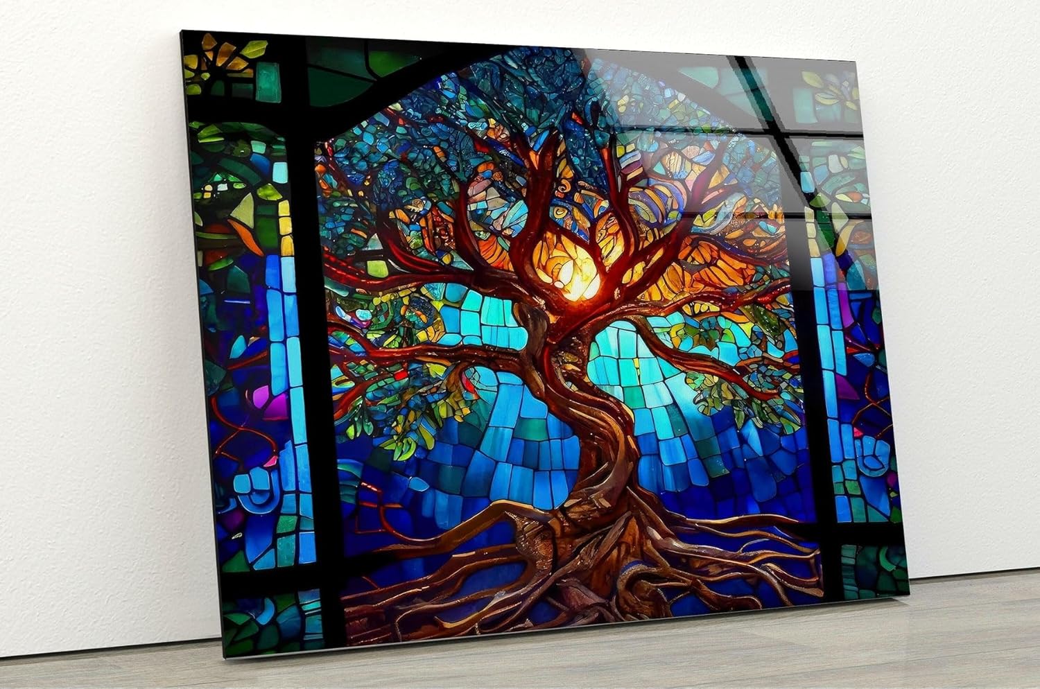 My Photostation.com 28Wx18H'' Stained Blue Life of Tree Glass Wall ArtTempered Glass Printing Wall Decor Large Wall Art Wall Hangings
