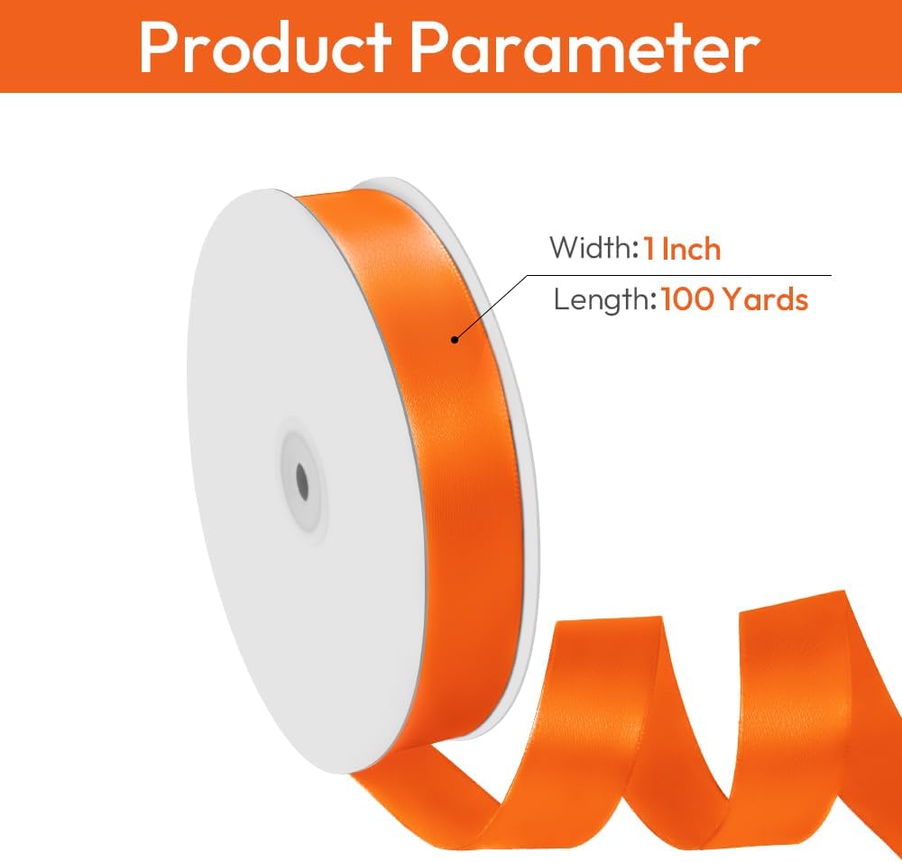 - 【Orange Ribbon】1 inch satin ribbon, 100 yards in length, meets diverse decorative needs and is perfect as Halloween ribbon for crafting Halloween wreaths, candy wrappings, and other handmade projects