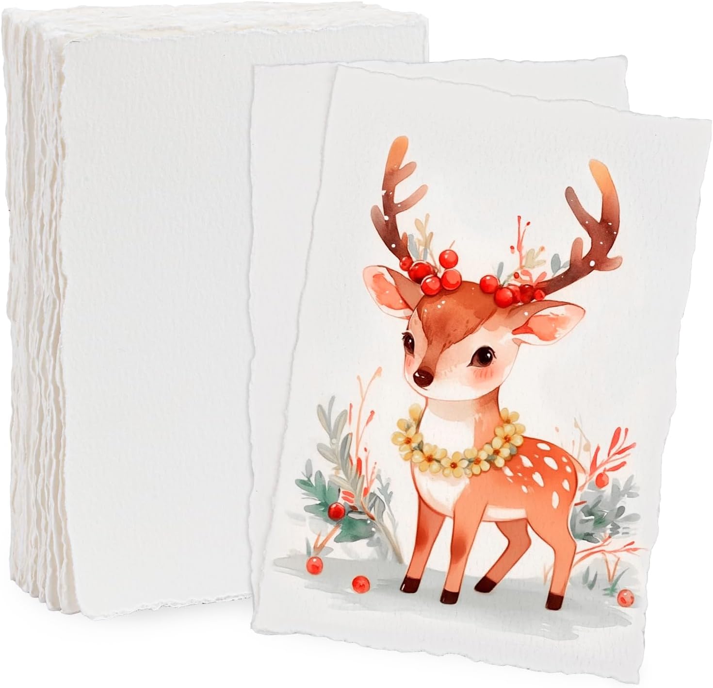 Lunarm Watercolor Paper 25 Sheets, Deckled Edge Paper 300 GSM 4 x 6 inch, Handmade Textured Cotton Paper for Wedding Invitation, Oil Pastel, Watercolor Painting and Cards, Crafts