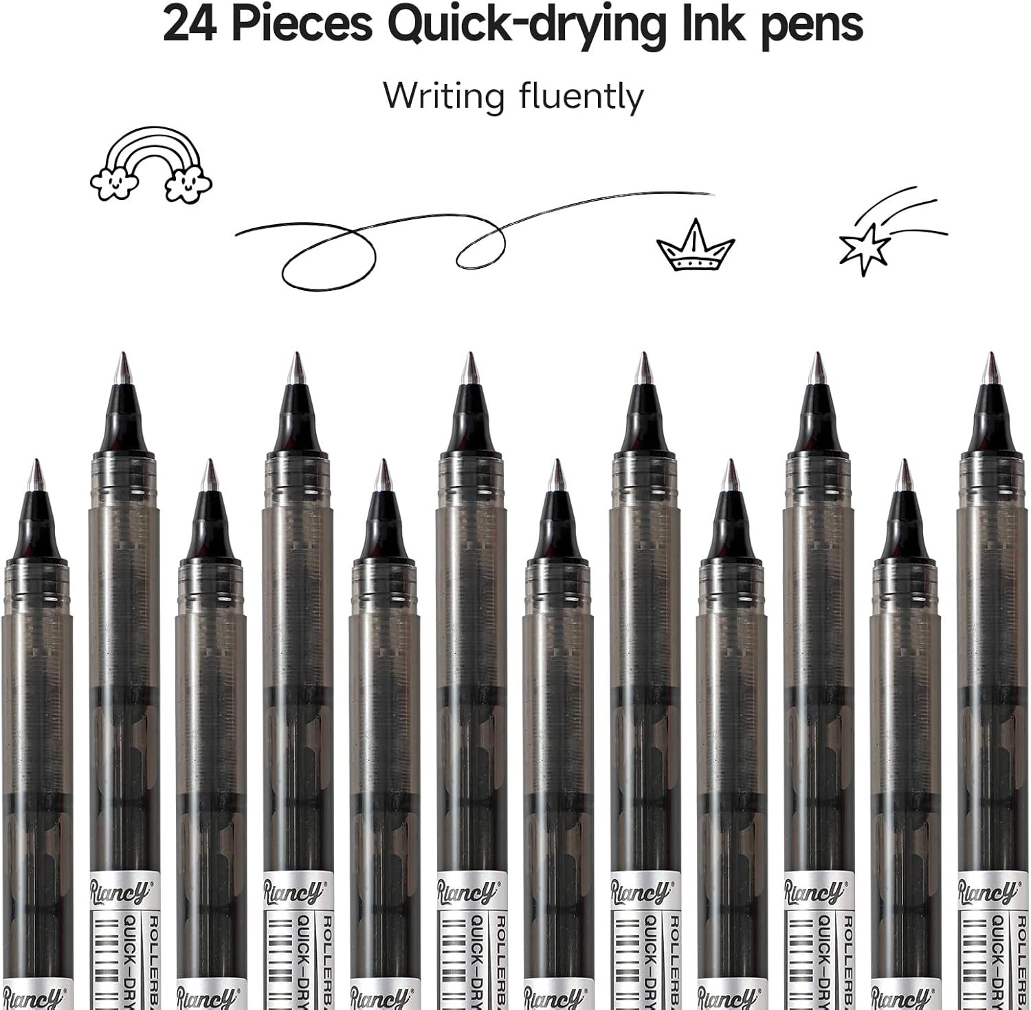 - RIANCY 24 Pack Quick - Drying Rollerball Pens: Smooth Writing Essential, Get 24pcs quick - drying ink pens with sleek rollerball tips! Delivers smooth writing for notes, journals, and school tasks—perfect for anyone needing reliable pens that won’t smudge. A top pick for “rollerball pens set” seekers.