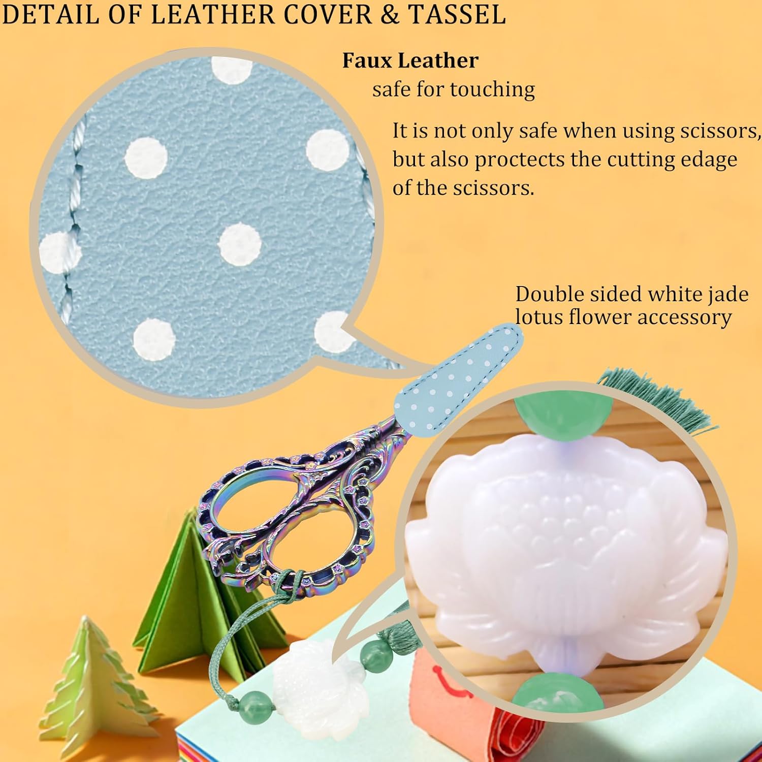 - Scissors Including:1pc small sewing scissors,1pc handmade tassels and 1pc leather scissors safe cover. suitable to be as a delicate gift for friends or families who love embroidery, DIY working.