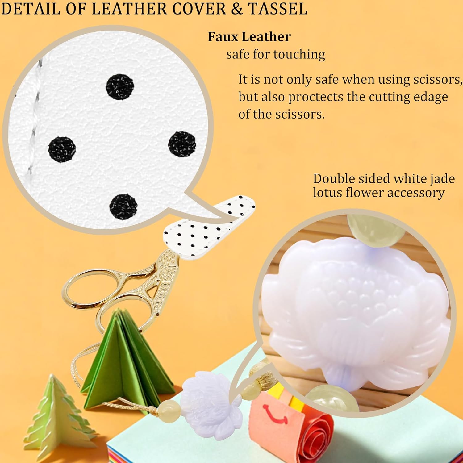 - Scissors Including:1pc small sewing scissors,1pc handmade tassels and 1pc leather scissors safe cover. suitable to be as a delicate gift for friends or families who love embroidery, DIY working.