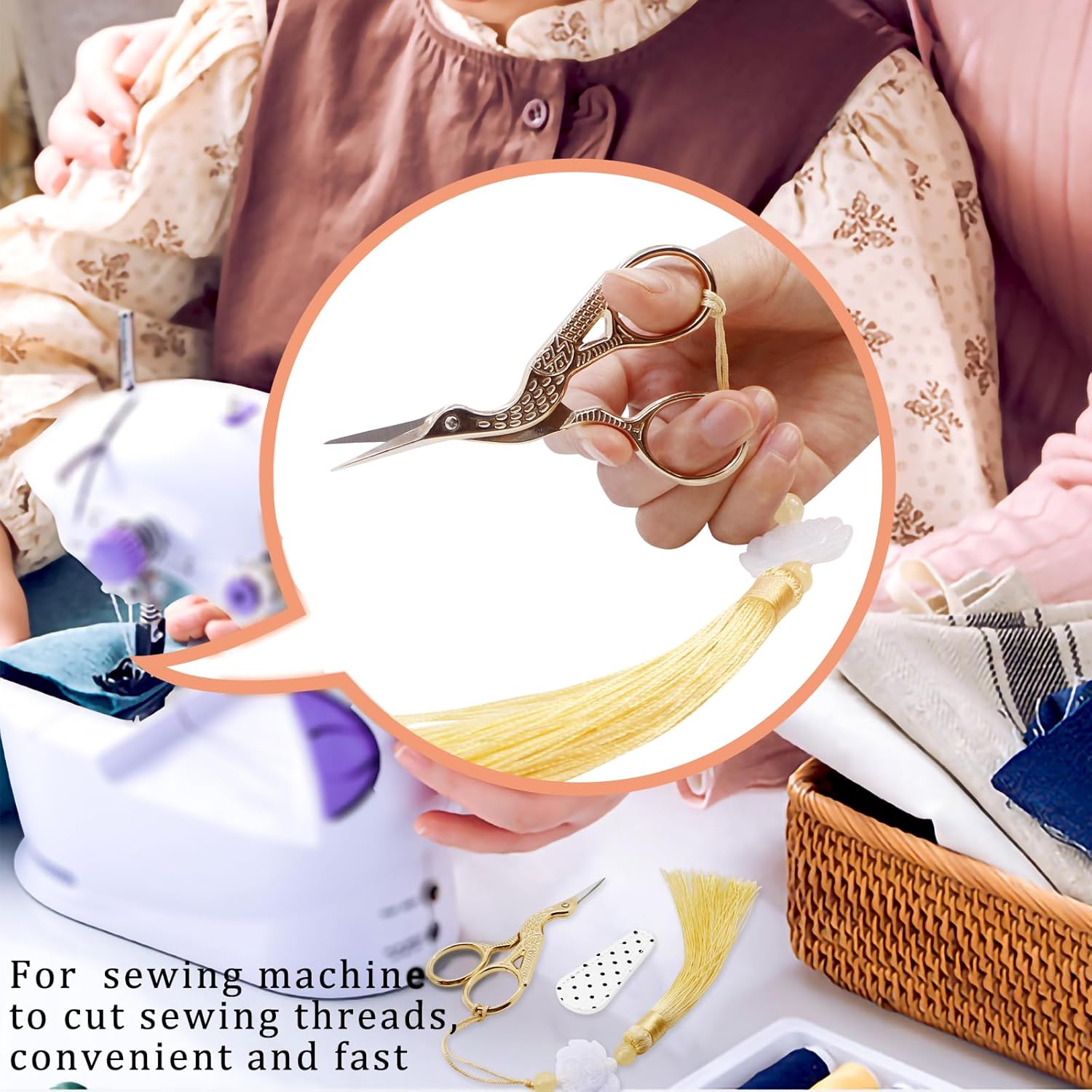 - Multipurpose Scissors:the cute scissors suitable for sewing, sewing mashion, paper, artwork, crafting,to cutting paper, thread, nail,NOT for heavy yarn or hard fabric cutting, only for threads.