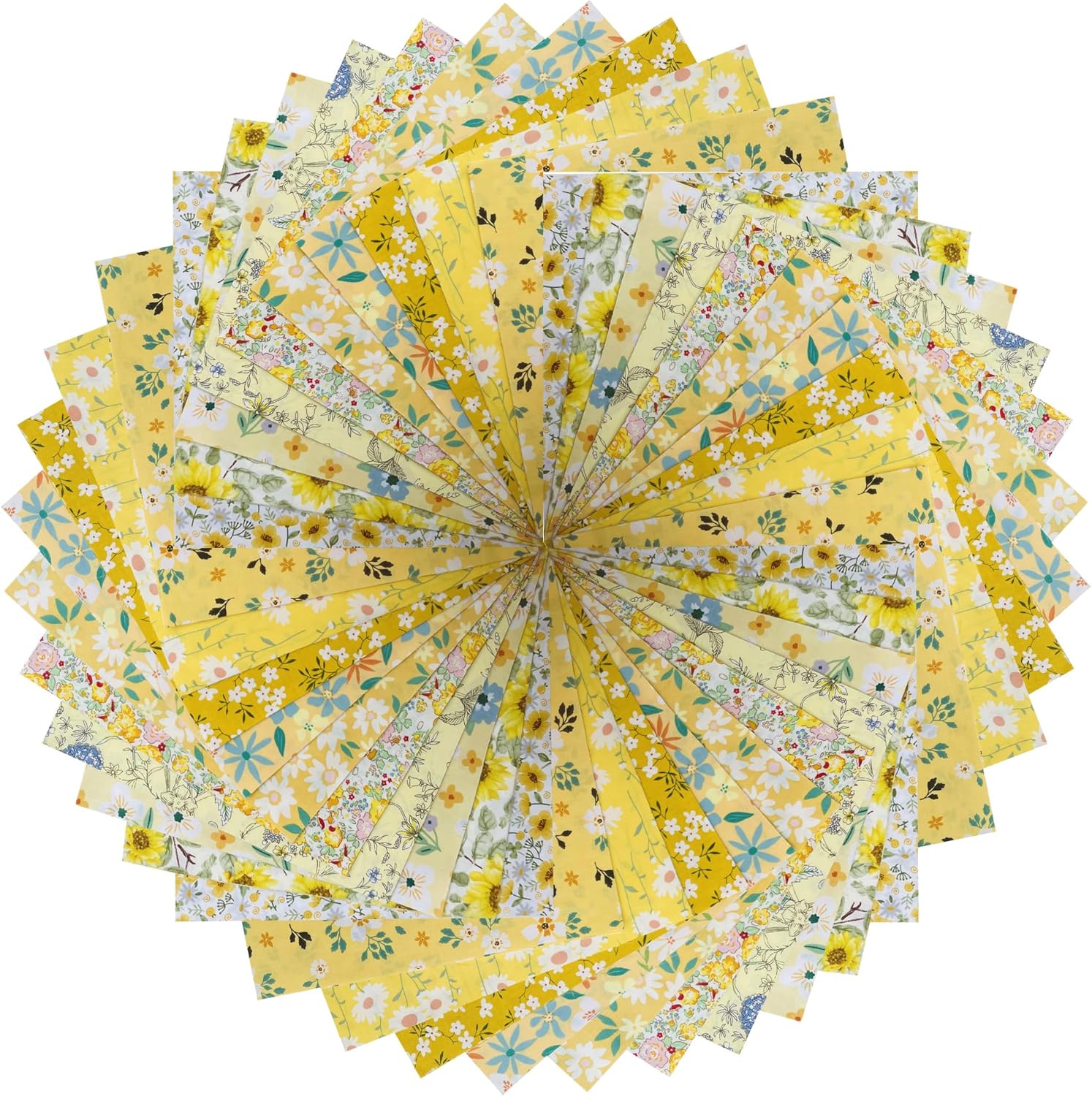 - Material and Size: These quilting fabric are made of 100% high-quality cotton, featuring soft and strong fabric bundles. Each sheet measures 10 x 10 inches. This set includes 50 pieces of 5 kinds of Yellow printed fabric squares, providing a variety of colors to satisfy your multiple craft sewing needs.