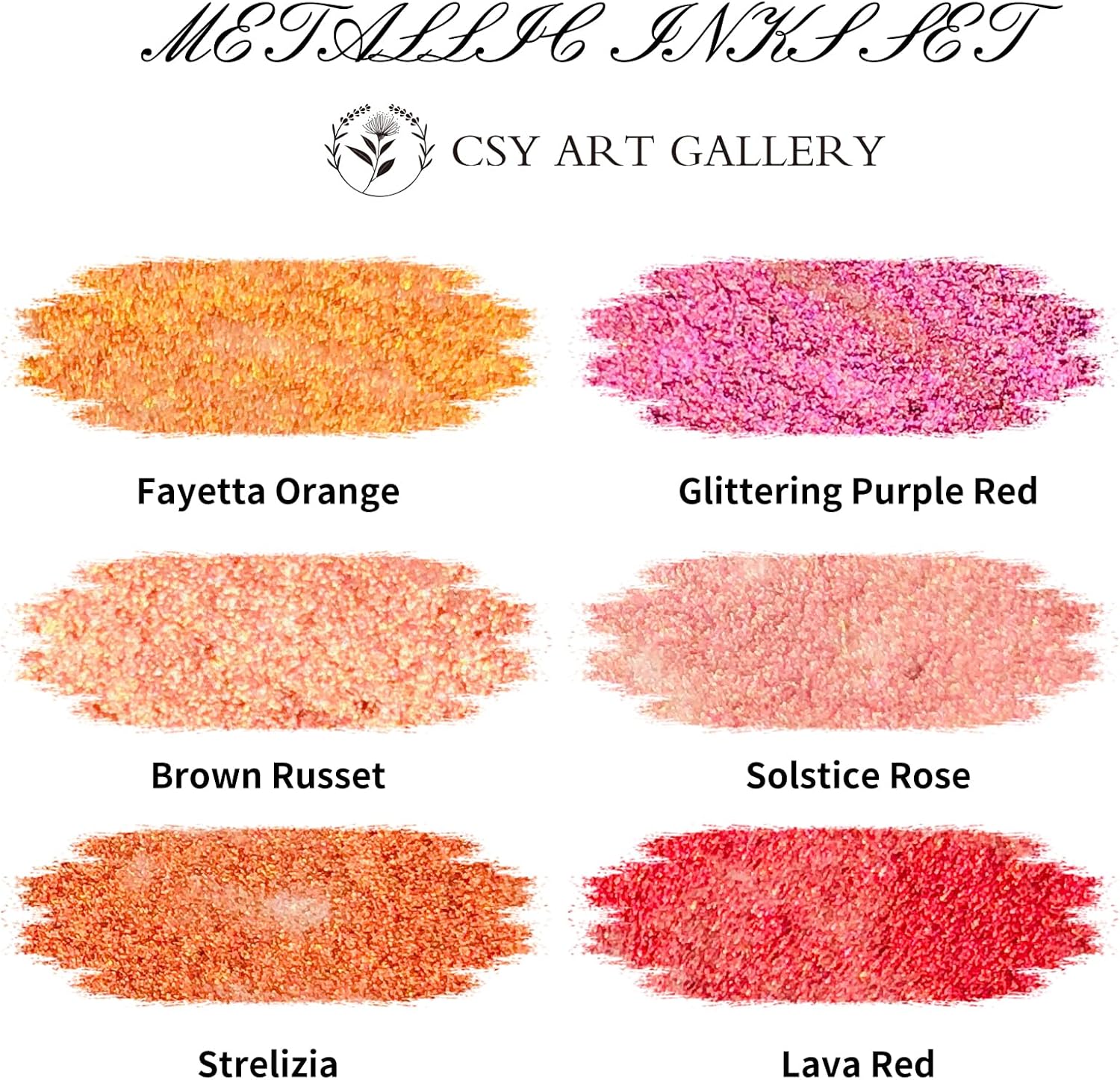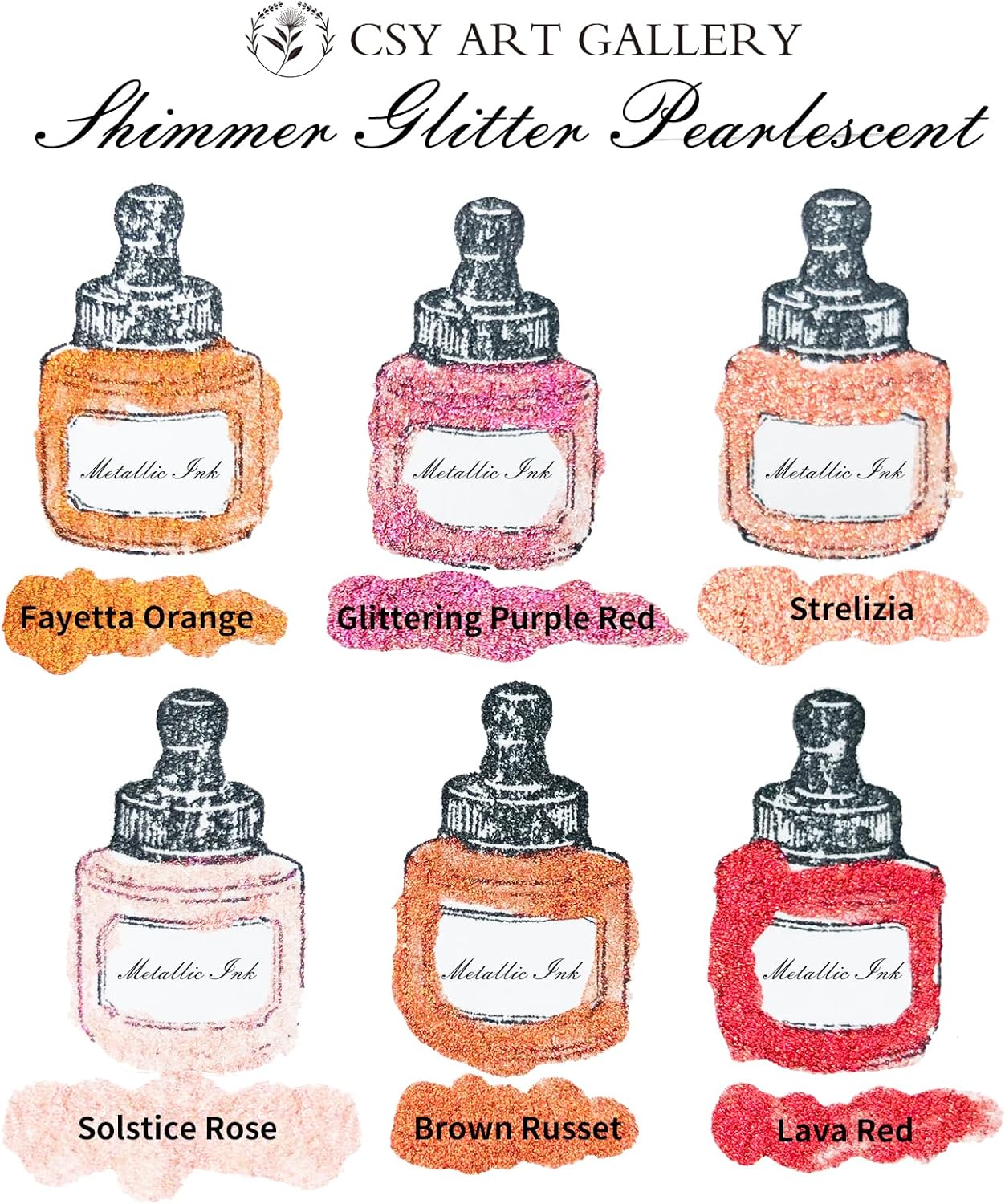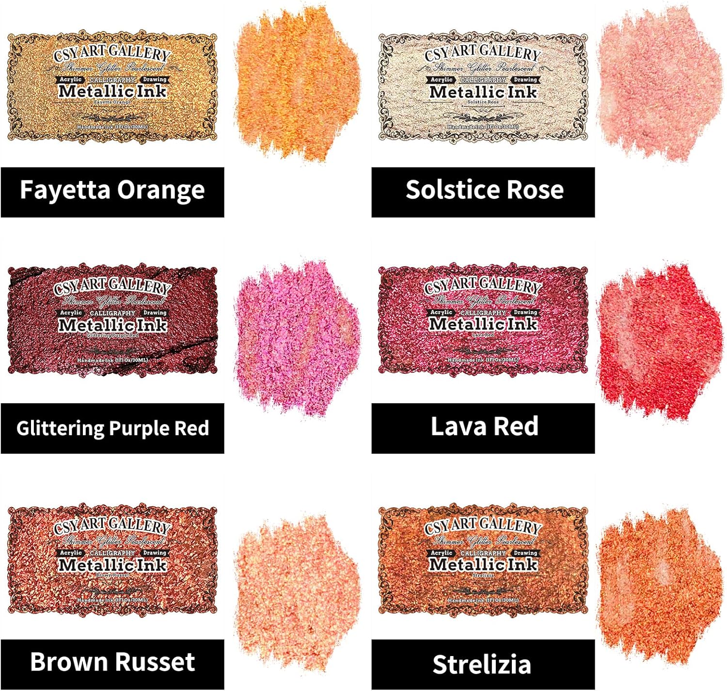 CSY art gallery Pearlescent Acrylic Inks Bottle with Dropper, 1oz - 29.5 ml Set of 6PCS Bronze Gold Red Liquid Drawing Ink for Calligraphy,Wood, Scrapbook Journals, Photo Albums (Saturn Twinkles Set)