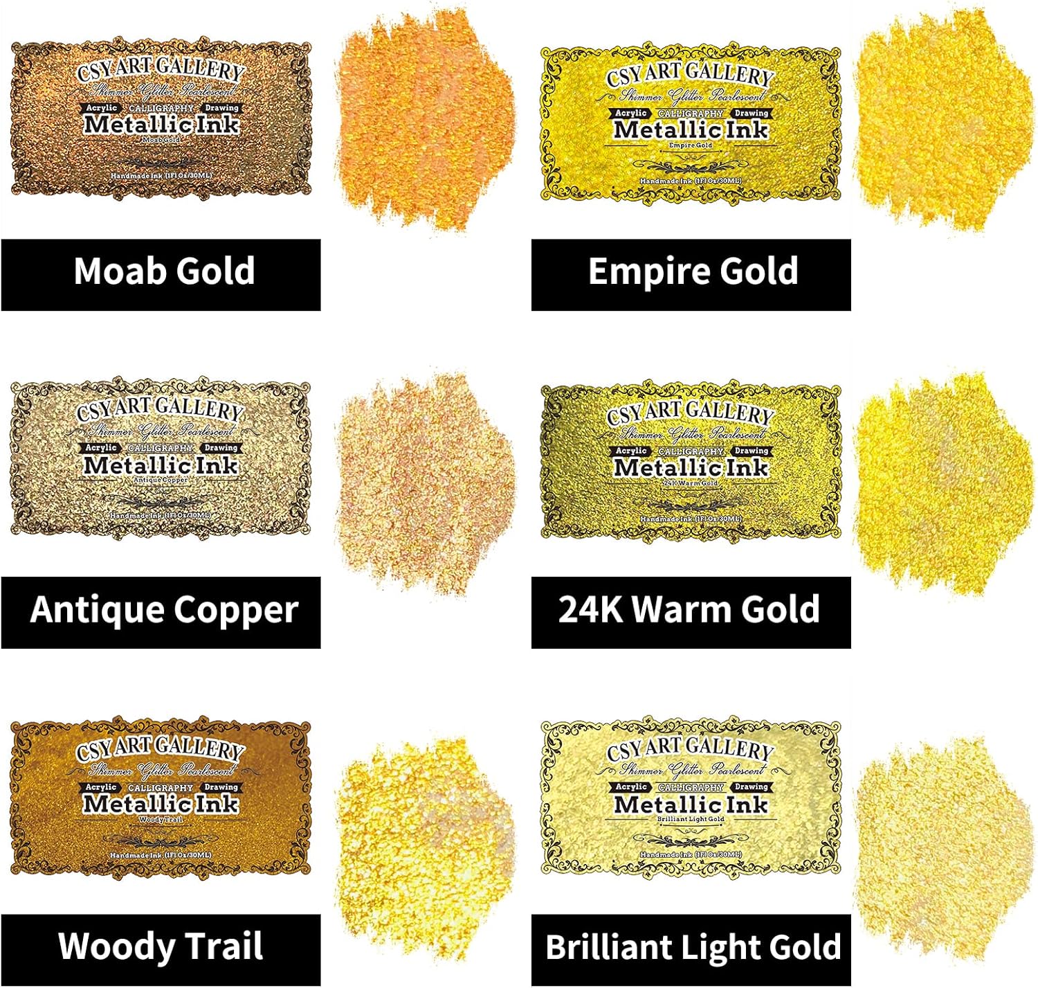 CSY art gallery Metallic Acrylic Paint Ink-Water Resistant Drawing Inks Set-24K Gold Alcohol Ink-Mica Paint for Resin, Rock,Markers Refill,Wood,Crafts (Fallen Leaves Starlight Set)