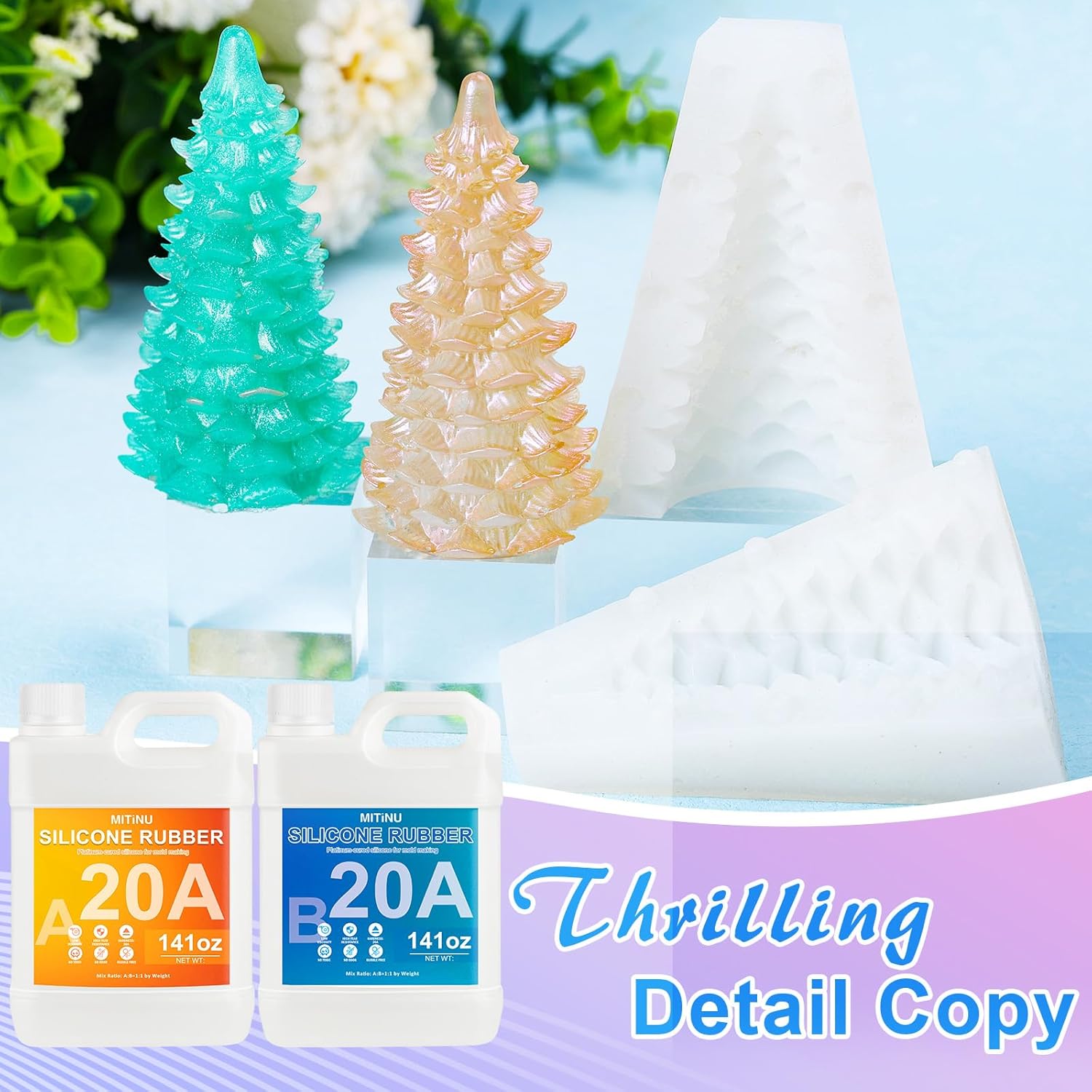 Silicone Mold Making Kit - 20A Liquid Silicone Rubber (1:1 Mix), Non-Toxic & Bubble Free Platinum Cure Silicone for Making Molds for Resin, Soap, Concrete, Craft Molds - 282oz Total