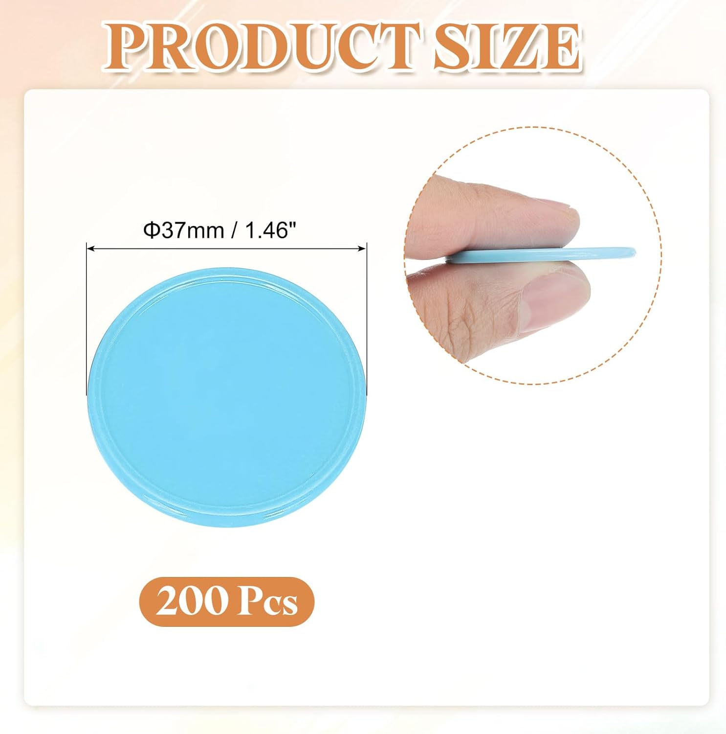 - Size & Packaging - The package contains 200 pcs of light blue plastic poker chips, measuring 1.46 inches (37mm) in diameter. The edge of each plastic chip is higher than the middle, and the surface is smooth, which makes it convenient for picking up.