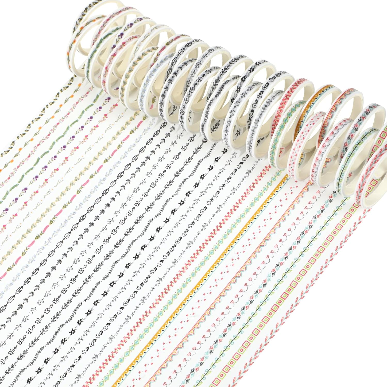 - Delicate Floral Washi Tape (5mm): Add a touch of nature to your crafts! This 5mm wide washi tape features charming floral patterns, perfect for adding a subtle, elegant accent to journals, scrapbooks, and DIY projects. At 5mm wide, itβs perfectly sized for narrow spaces and fine details.