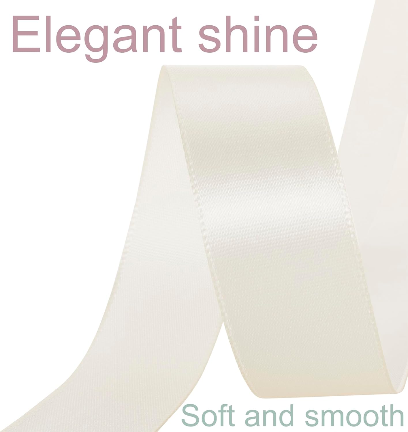 1 Inch Ivory Ribbon, 50 Yards Craft Polyester Satin Ribbon Perfect for Gift Wrapping, Handmade Roses, Wedding Party Decorations and DIY Crafts