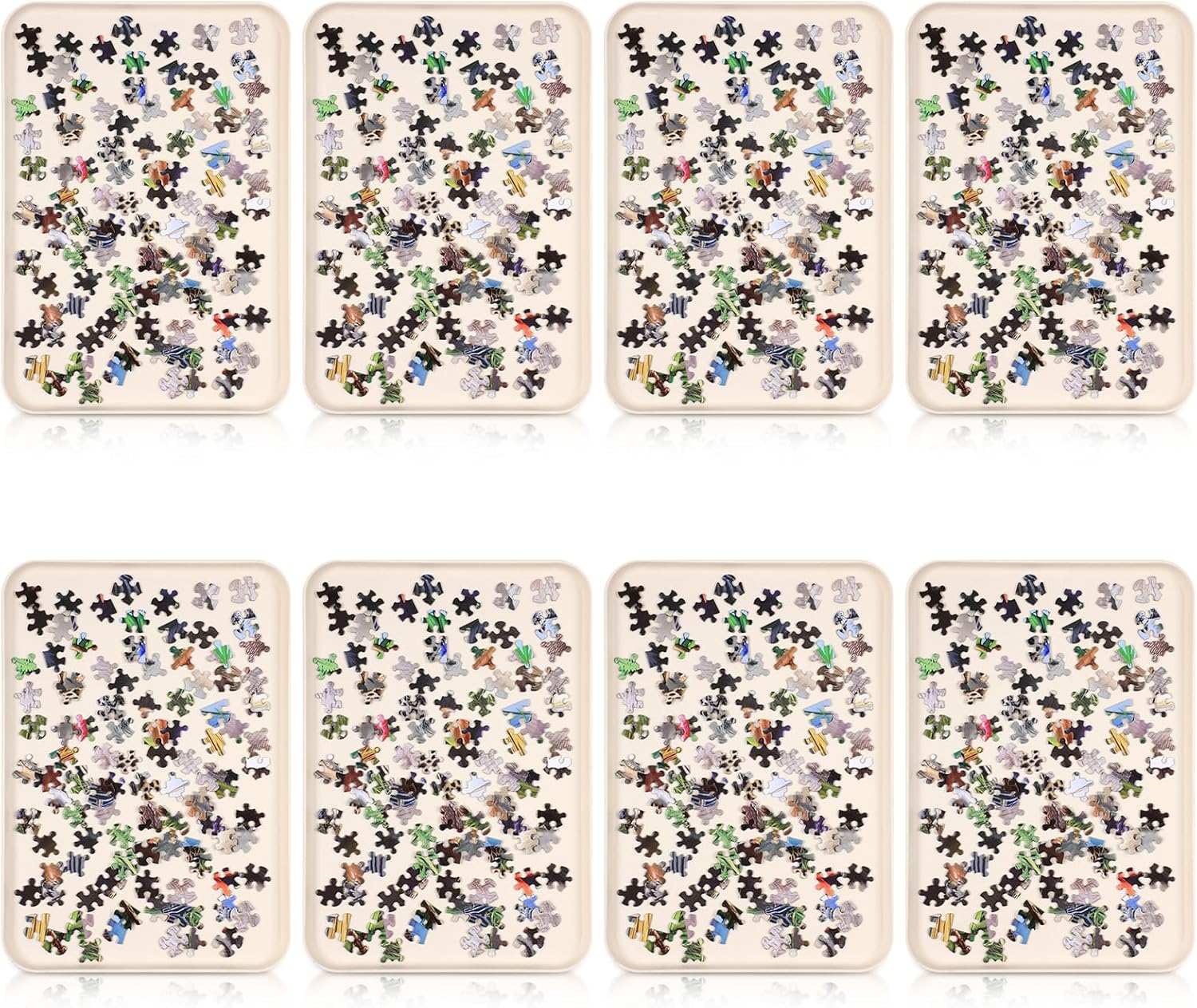 8 Pcs 15'' x 10.5' Extra Large Puzzle Sorting Trays Stackable Puzzle Trays for Sorting Piece Sorter Jigsaw Storage Accessory for 2000/3000/5000/6000 Pieces(Beige)