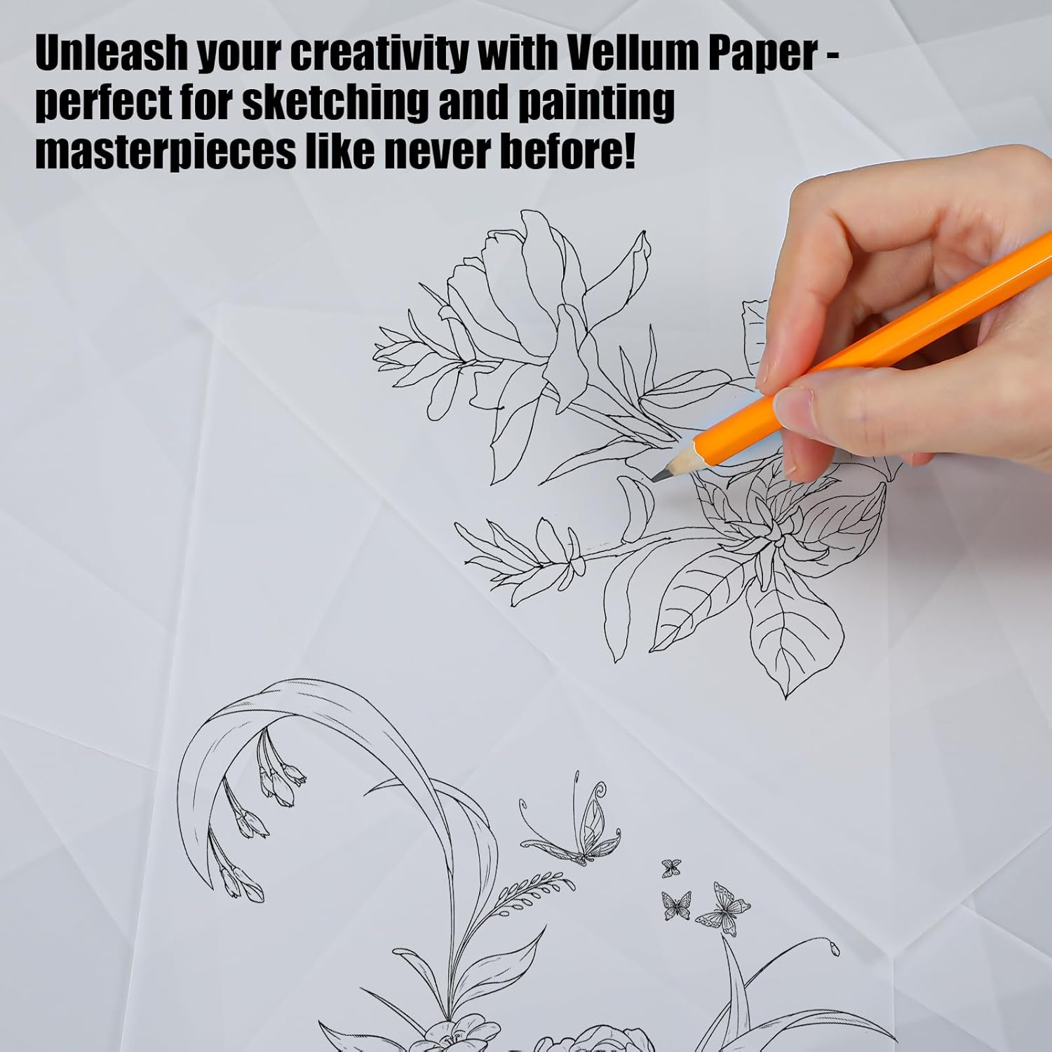 - 【Widely Used】: The printable vellum paper is perfect for tracing, scrapbooking, wedding invites, card inserts, photo overlays, rubber stamping, and DIY decorations. The tracing paper' versatility suits artists, crafters, and professionals alike. You can stick sequin or ribbons on the vellum paper, or draw on it with colored pens