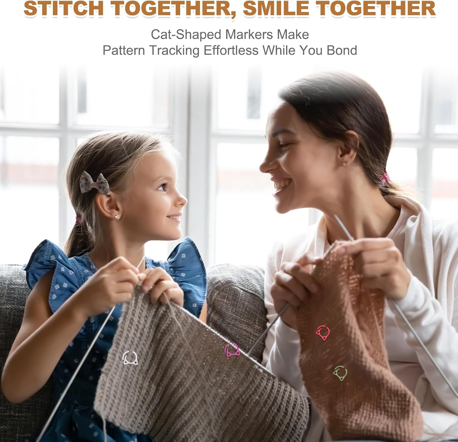 - Advantage: Lightweight Metal Construction: Crafted from smooth-polished metal that eliminates yarn snagging and withstands long-term use without deformation. Secure Tangle-Free Functionality: The split-ring design grips yarn firmly without slipping, yet releases smoothly for effortless repositioning during intricate projects. Instant Stitch Visibility: Cute cat shapes accelerate pattern tracking with clear visual cues.