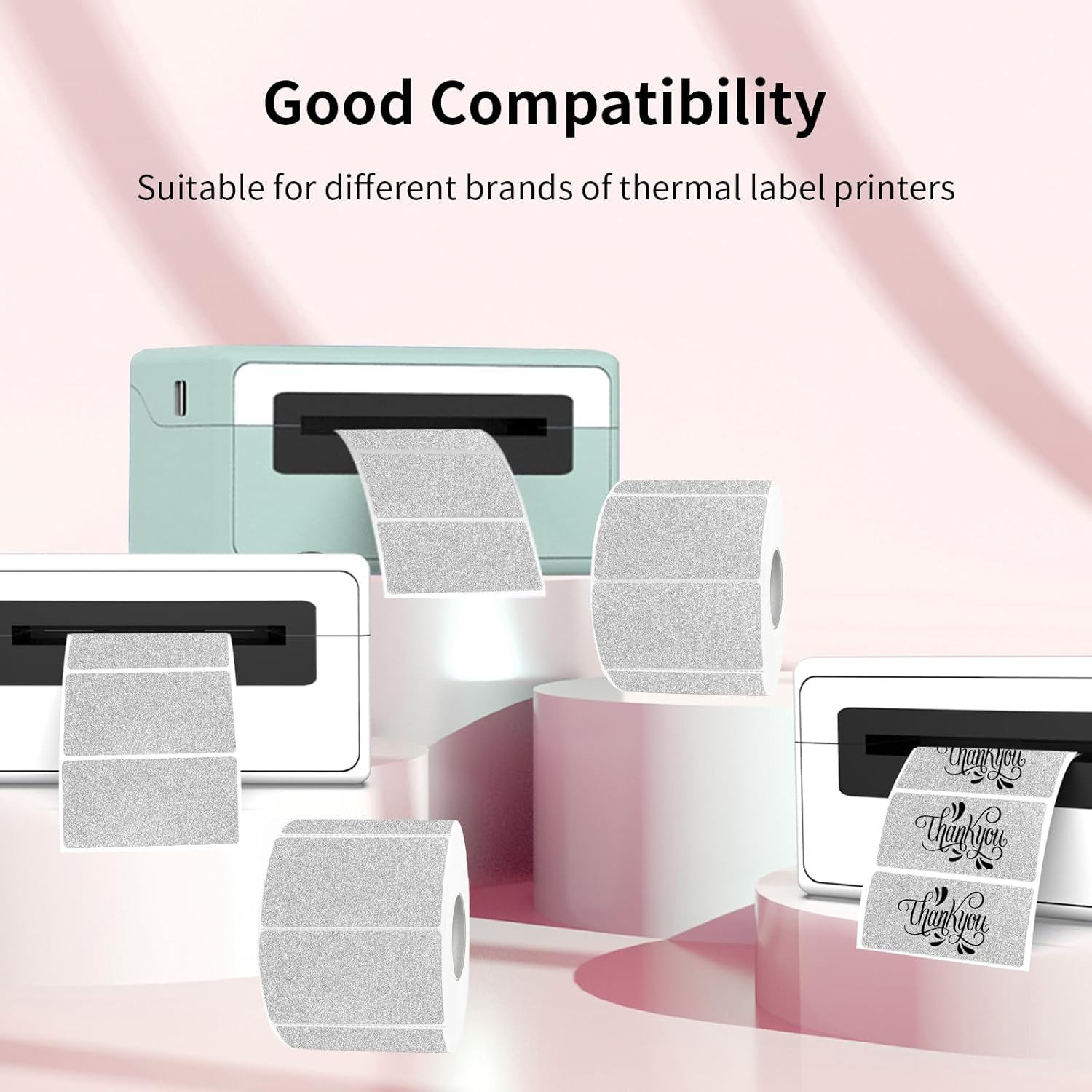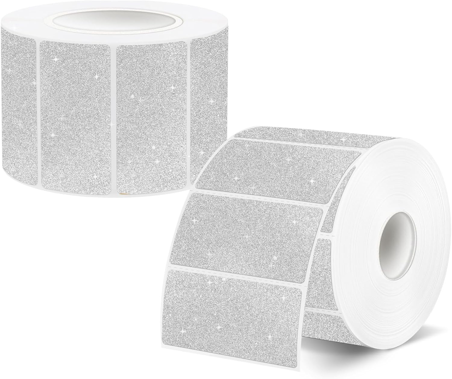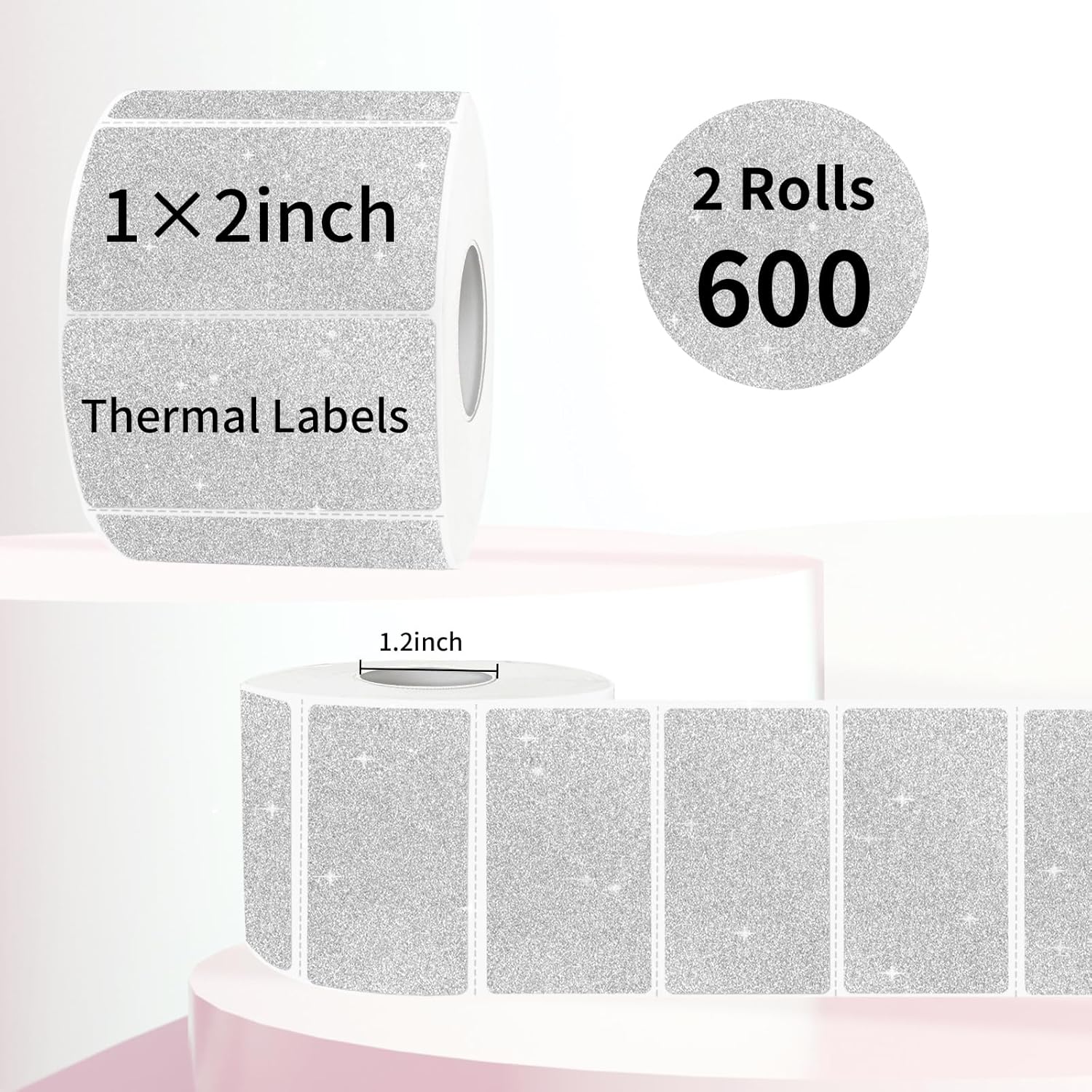 2x1 Inch Holographic Thermal Labels, Silver Glitter Thermal Printer Stickers, Waterproof Self-Adhesive Shipping Barcode Address Label Printer Sticker- 600 Labels/ 2 Rolls
